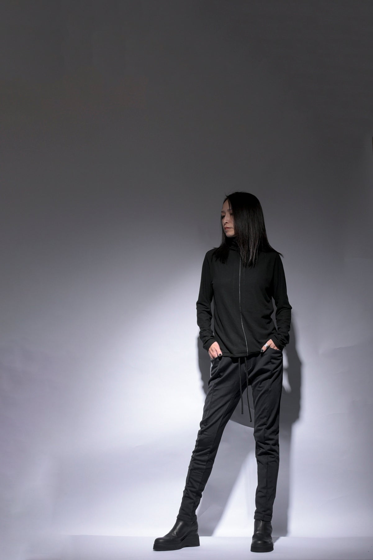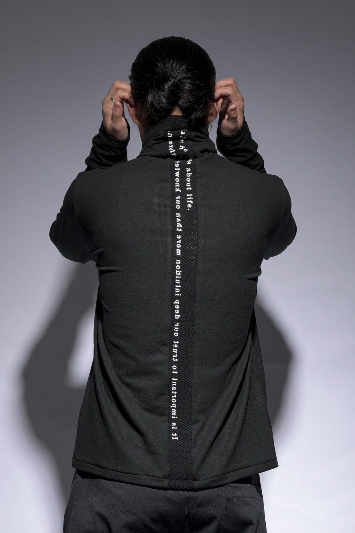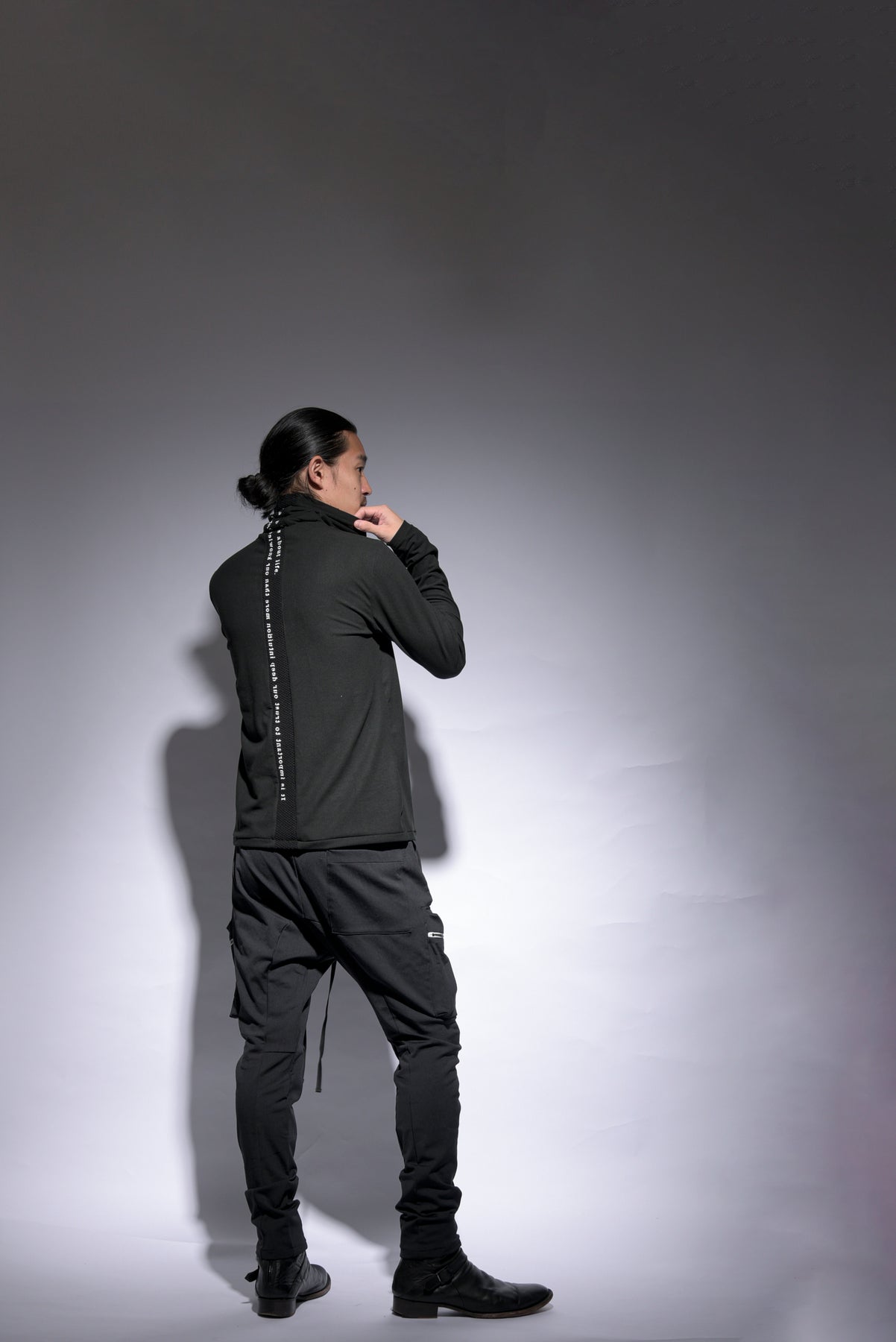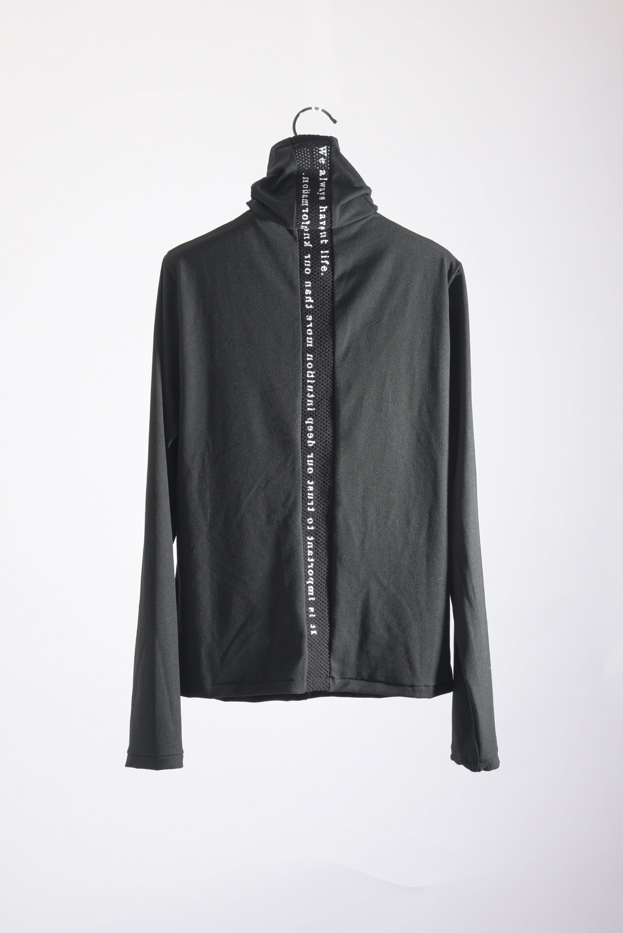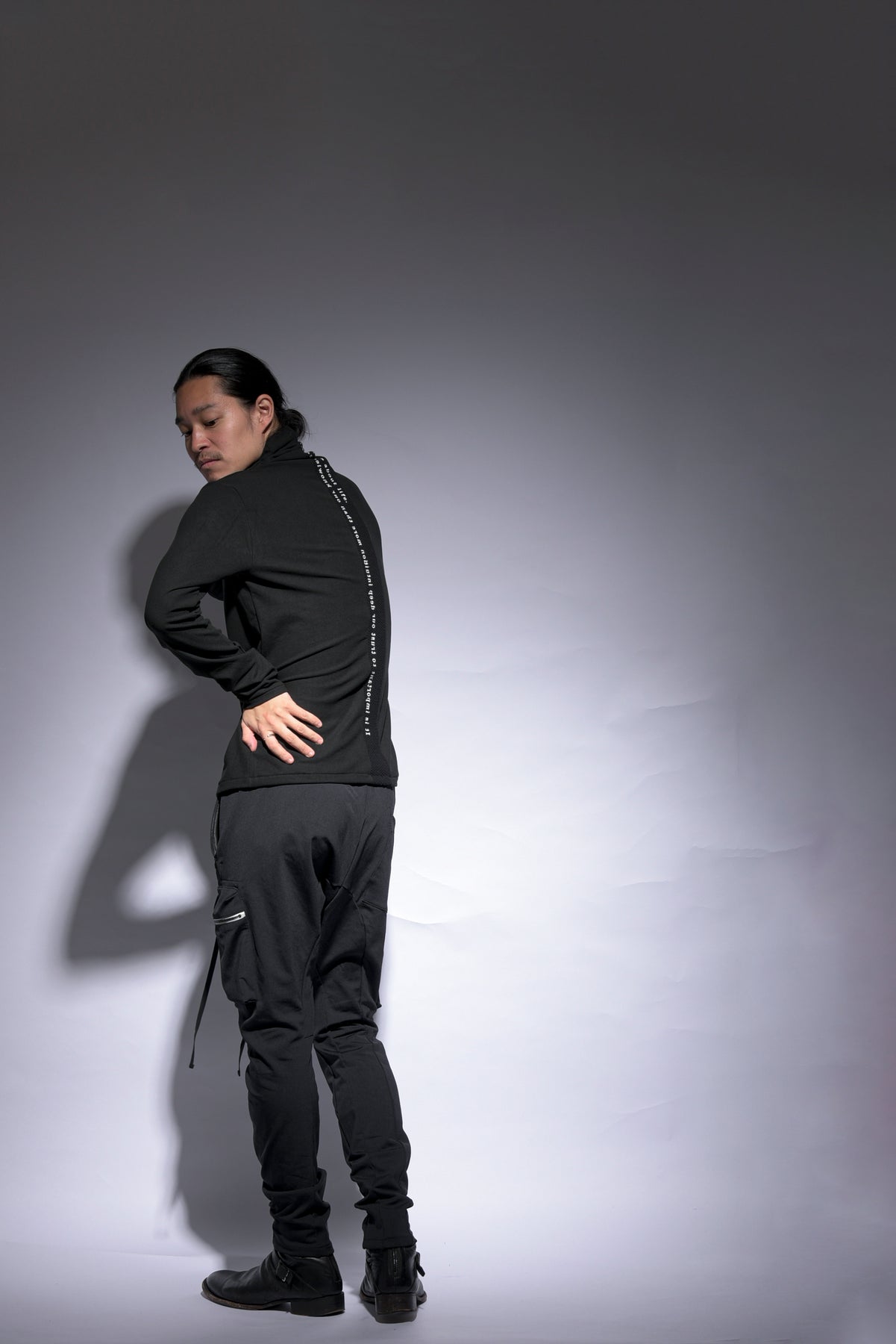 バルキー性のある細番手の糸で構成し、特殊起毛によって膨らみとソフト感を併せ持ったストレッチジャージーに。柔らかな肌に優しい着心地のハイネックプルオーバーです。後身センターにはプリント入りの別生地を掛け合わせアクセントに。(プリントの入り方はそれぞれ若干異なります。)暖かく、これからの季節のインナーにも重宝いただけます。