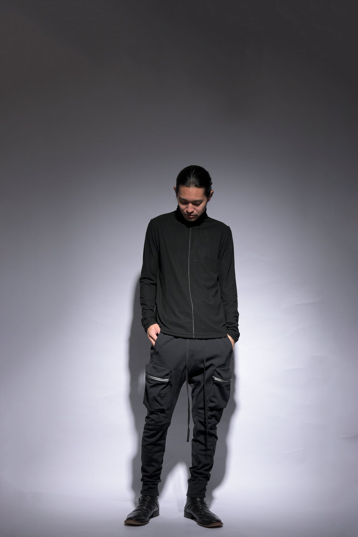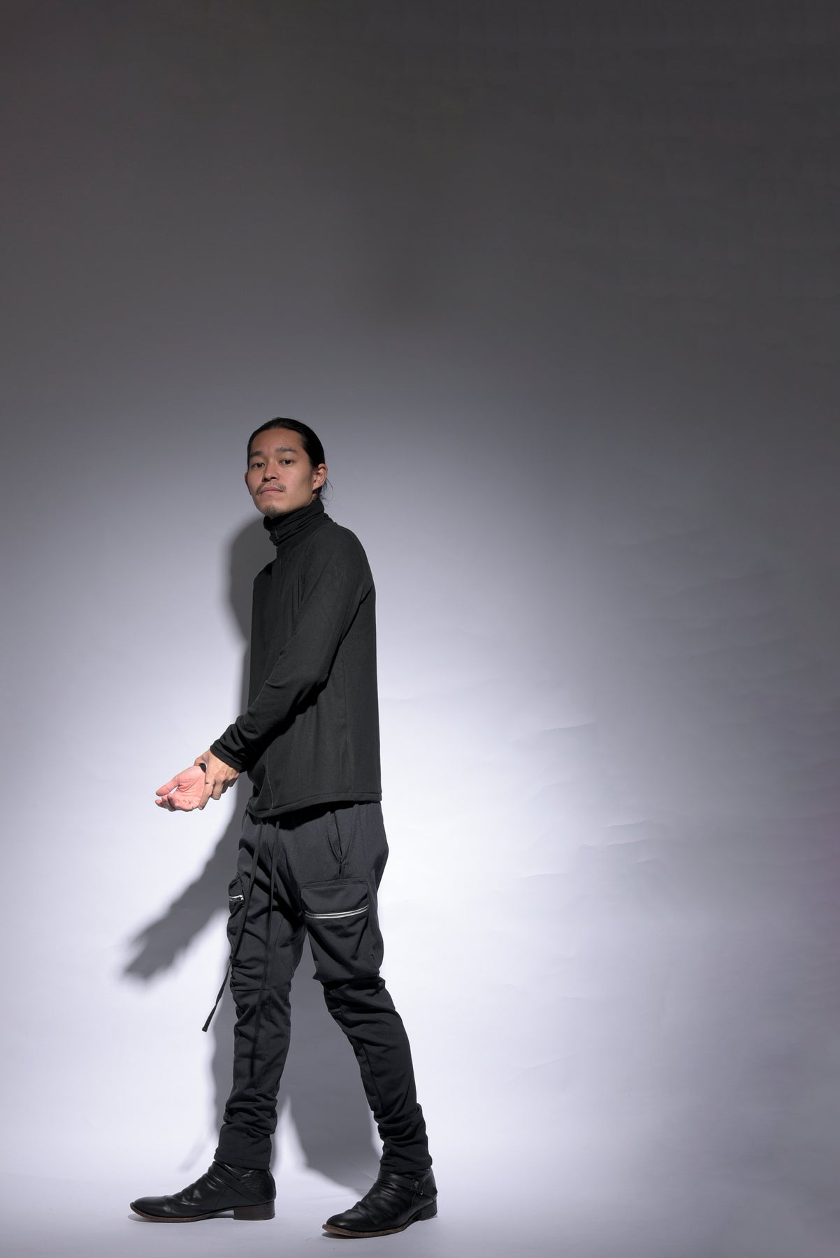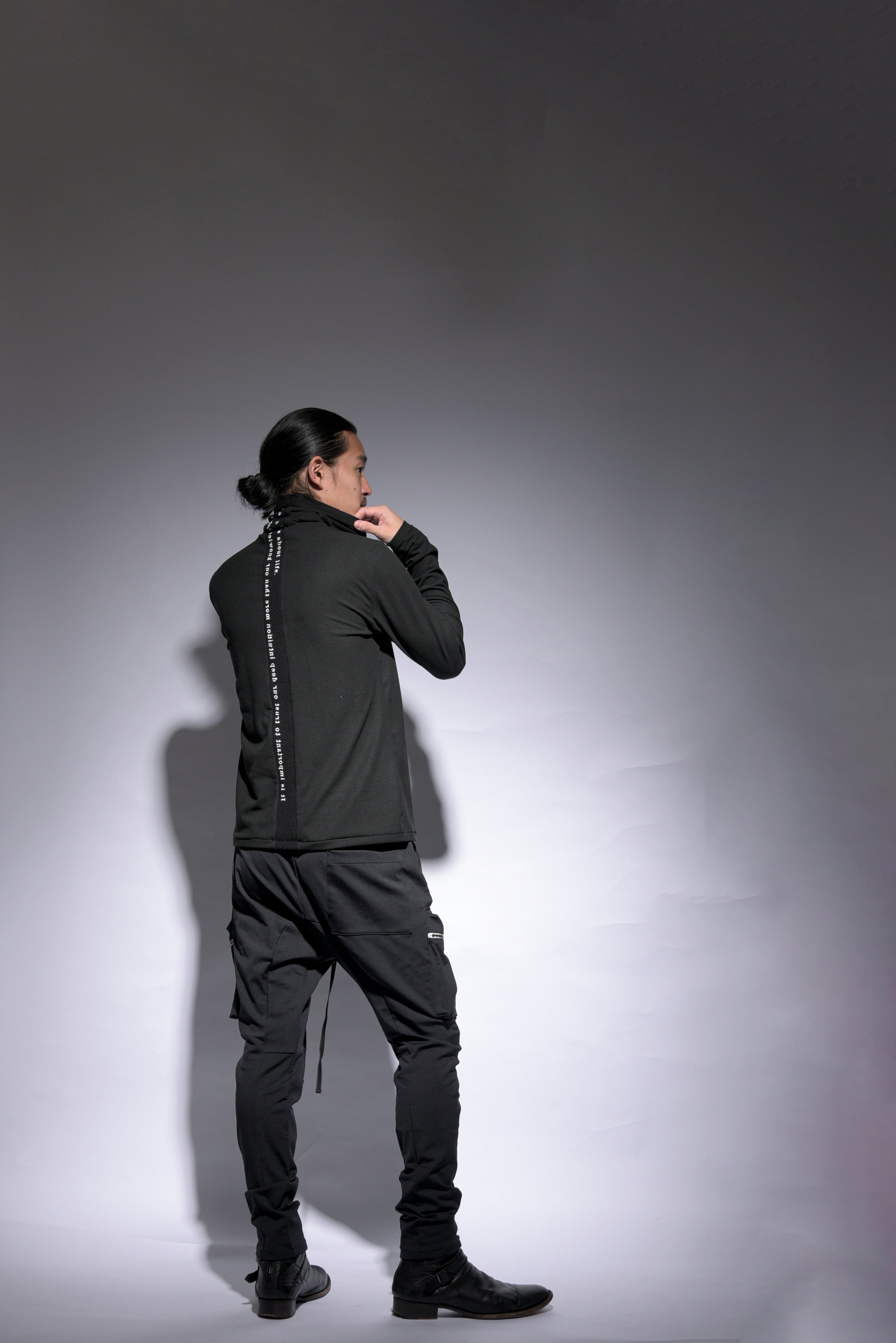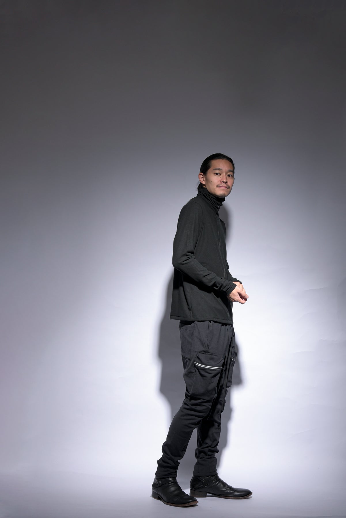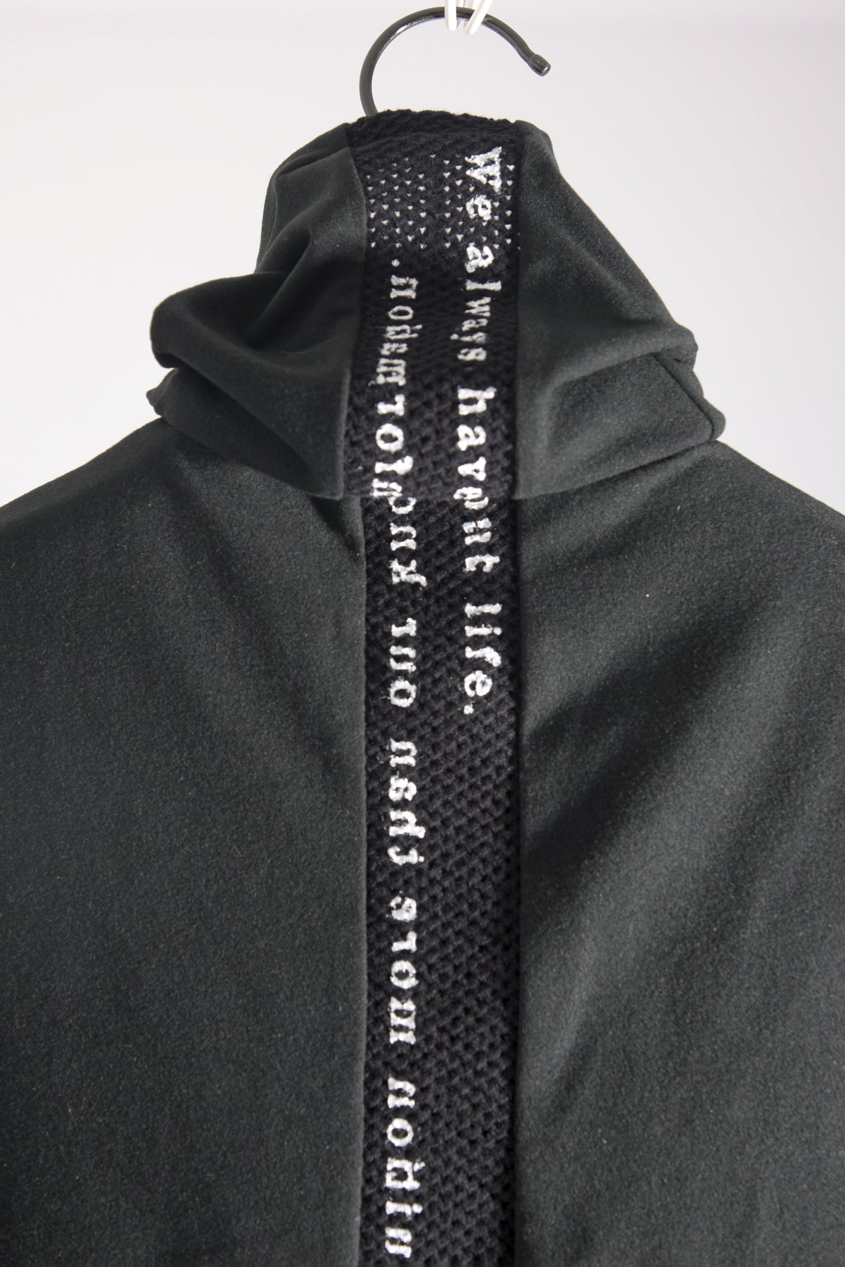 バルキー性のある細番手の糸で構成し、特殊起毛によって膨らみとソフト感を併せ持ったストレッチジャージーに。柔らかな肌に優しい着心地のハイネックプルオーバーです。後身センターにはプリント入りの別生地を掛け合わせアクセントに。(プリントの入り方はそれぞれ若干異なります。)暖かく、これからの季節のインナーにも重宝いただけます。