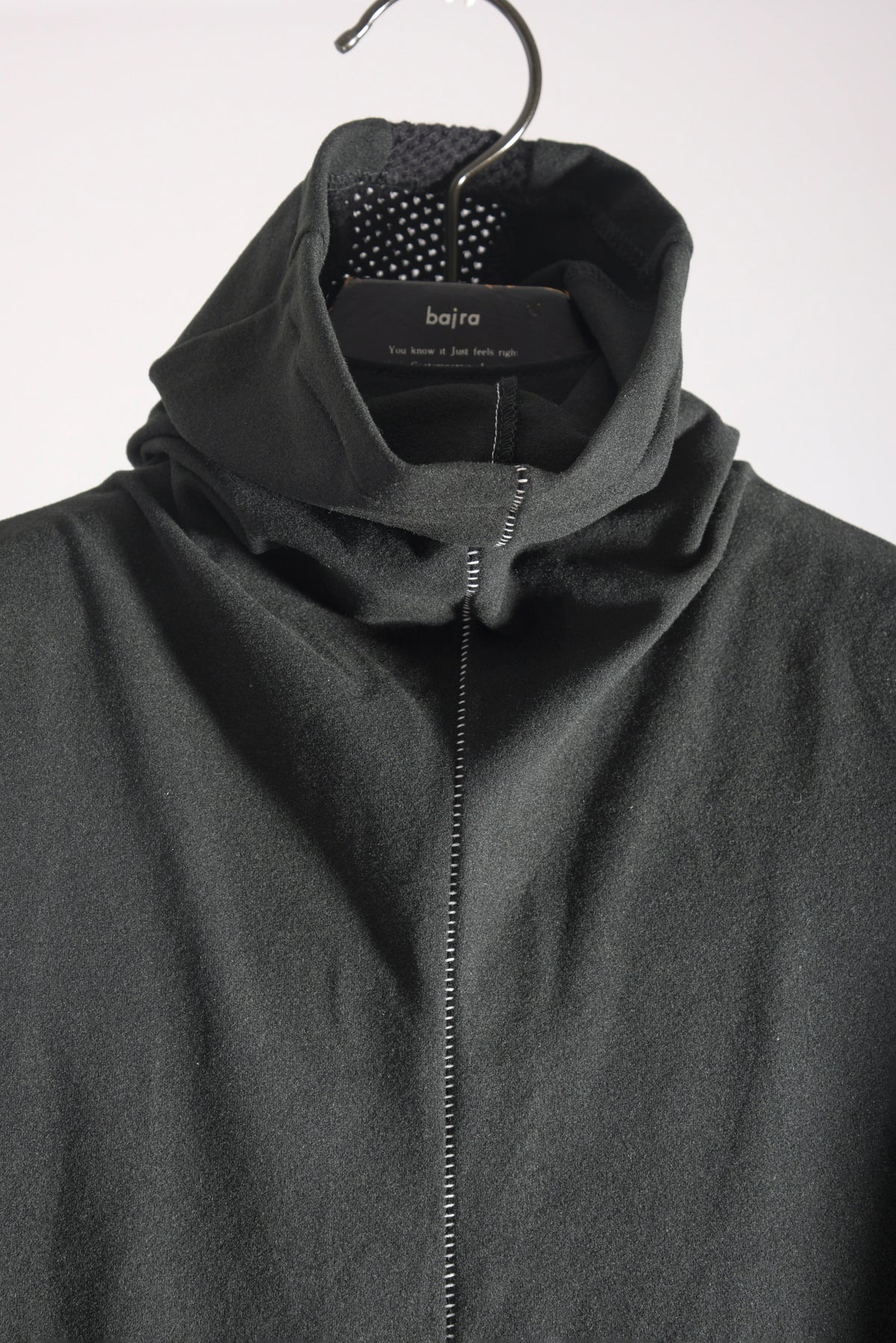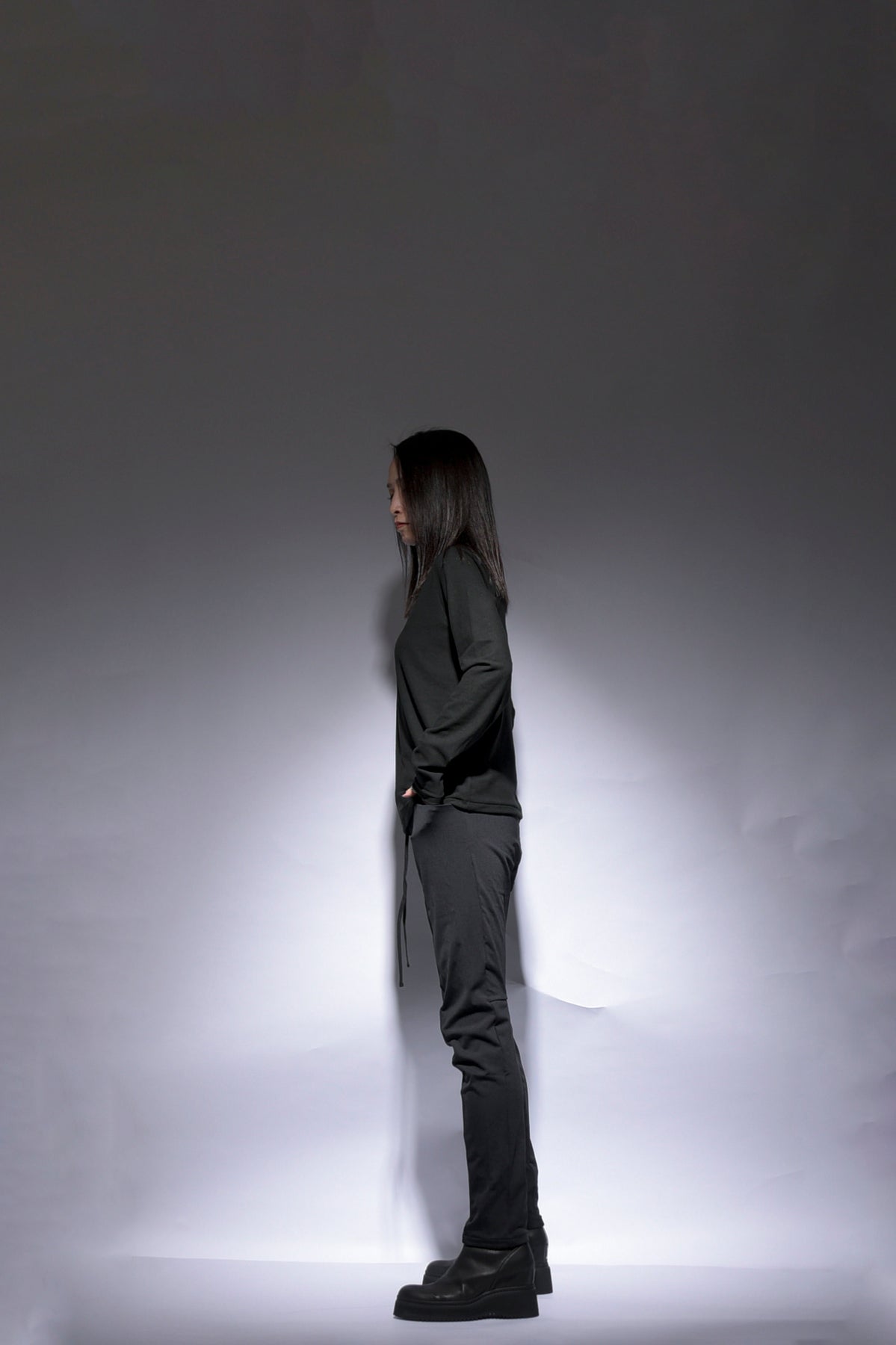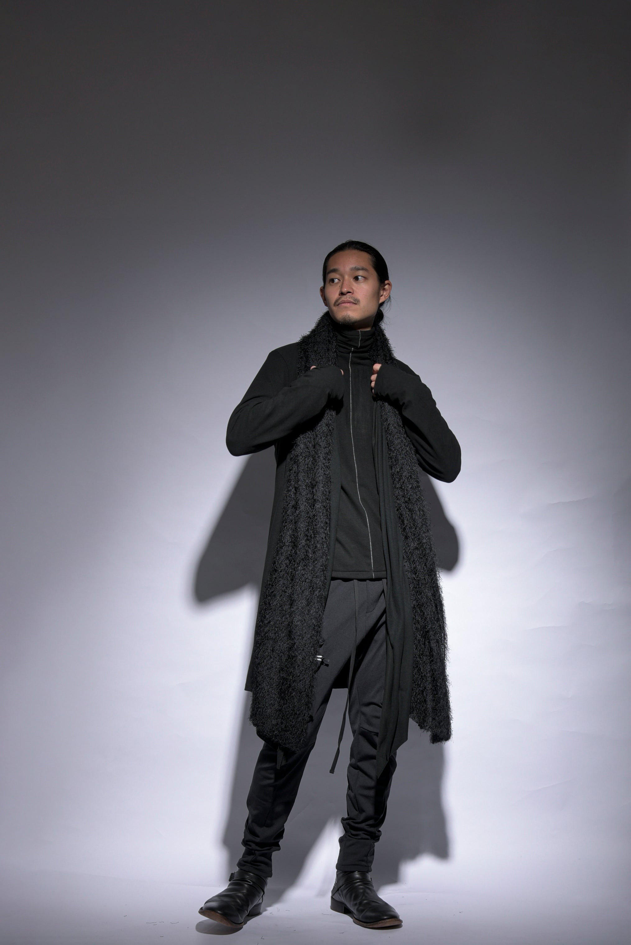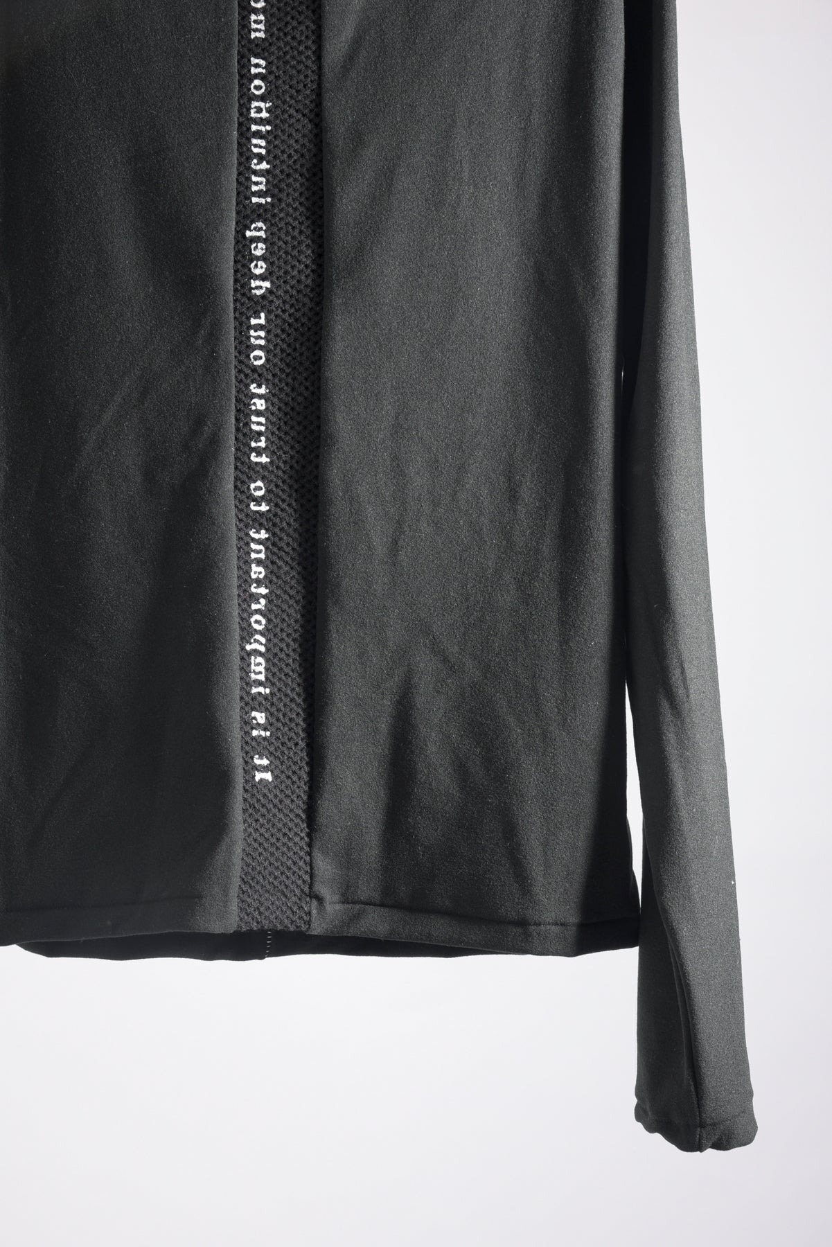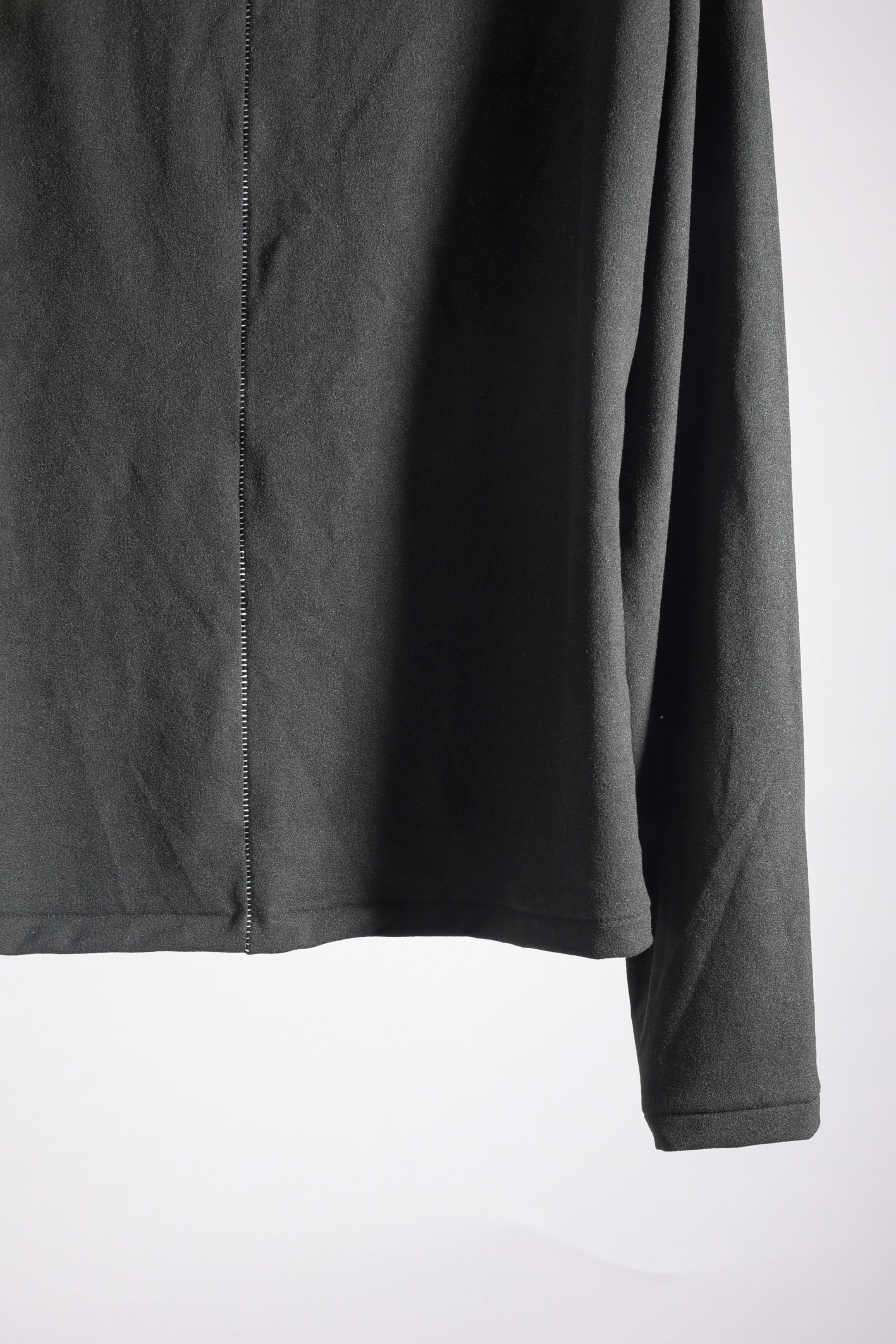 バルキー性のある細番手の糸で構成し、特殊起毛によって膨らみとソフト感を併せ持ったストレッチジャージーに。柔らかな肌に優しい着心地のハイネックプルオーバーです。後身センターにはプリント入りの別生地を掛け合わせアクセントに。(プリントの入り方はそれぞれ若干異なります。)暖かく、これからの季節のインナーにも重宝いただけます。