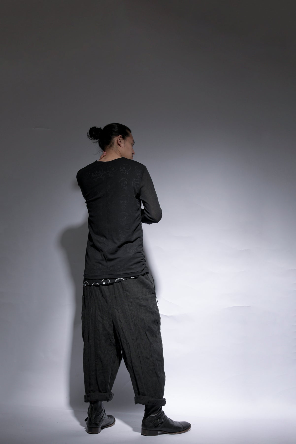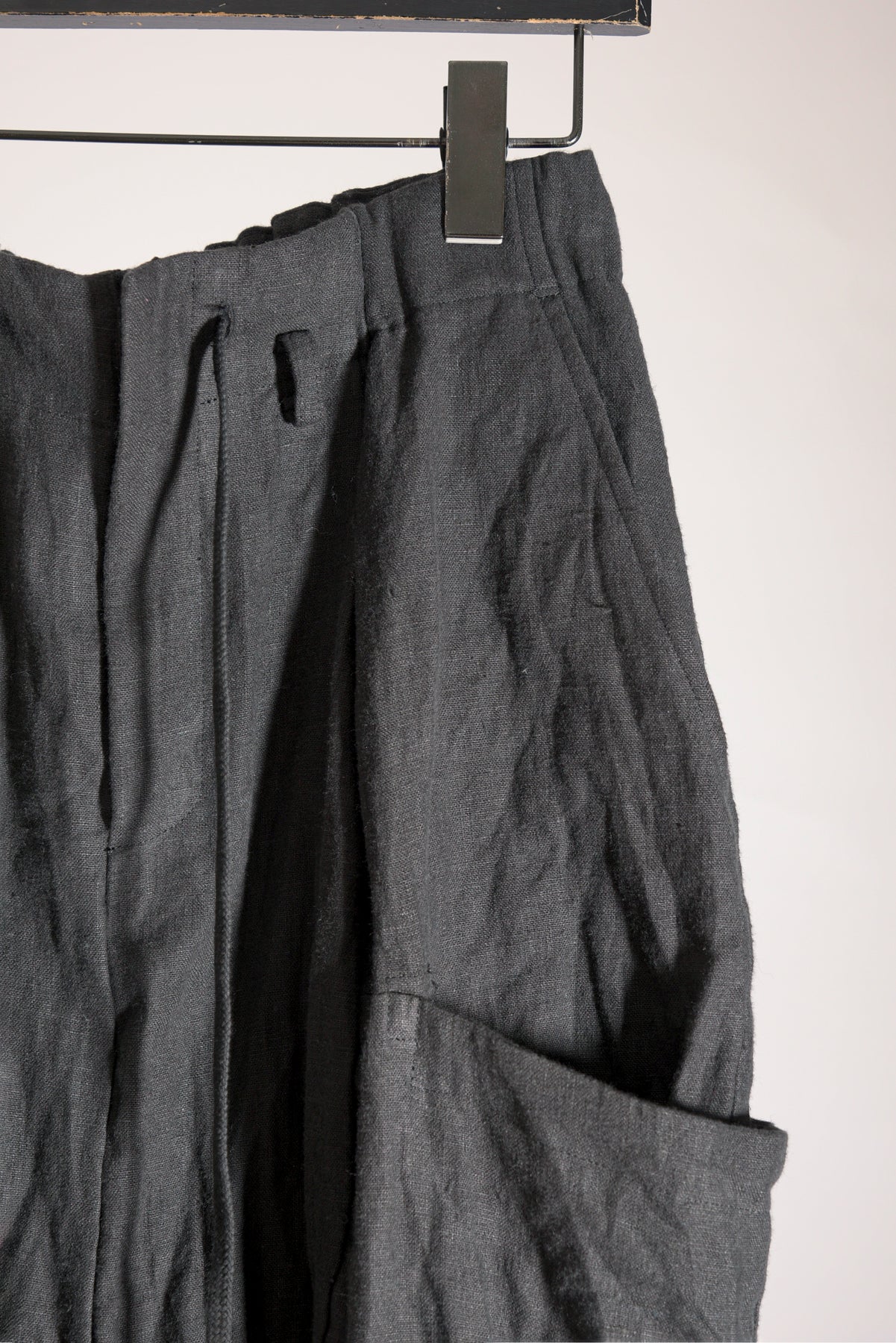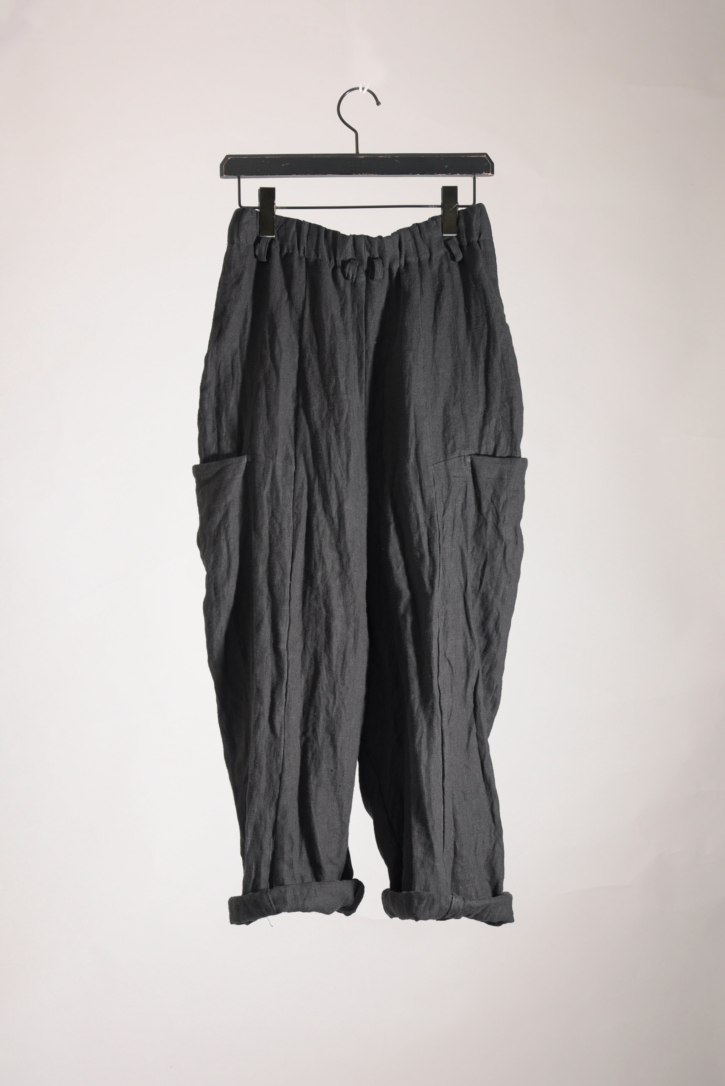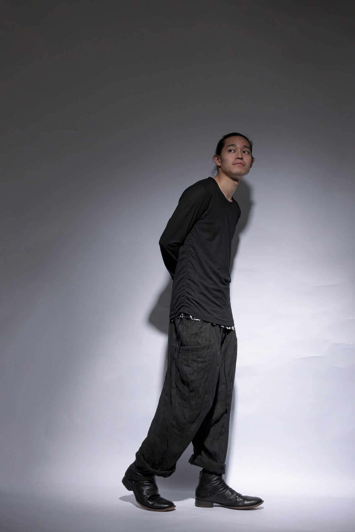織りから加工まで国内で行っているフレンチリネンを使用したバルーンパンツ。両面に起毛加工を施すことにより優しい表情に仕上がりました。しなやかな肌触りでご着用いただくほどに柔らかな着心地になります。高い吸水性と抗菌性に優れていますので、春から夏にかけて大活躍させていただける一本です。