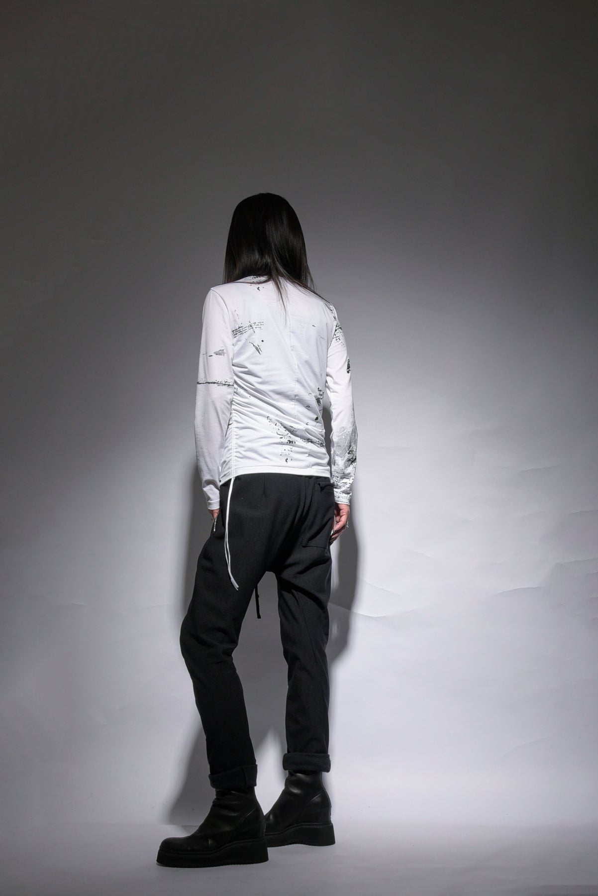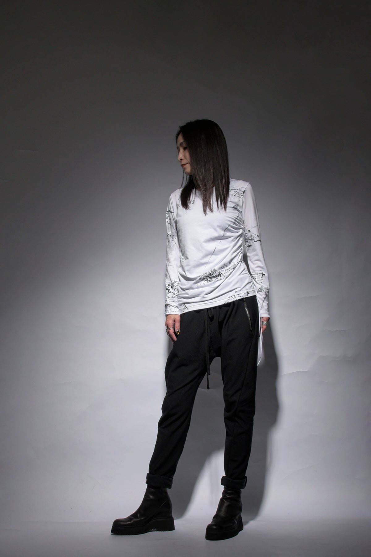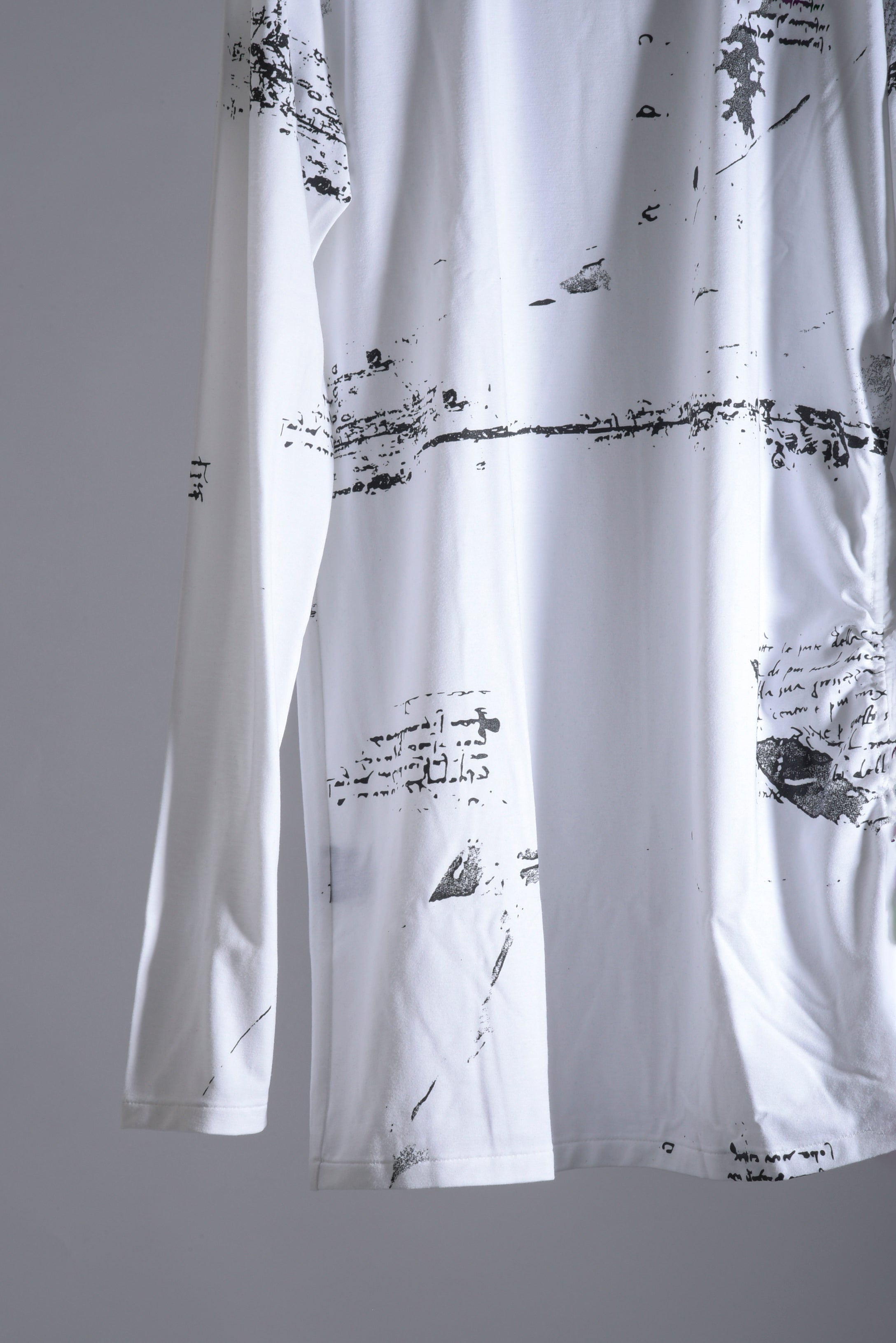 シルケット加工を施し毛羽を極限まで削ぎ落とし、艶やかな表面感を実現させたベア天竺の総柄プリントプルオーバーです。さらにポリウレタン繊維を使用し型崩れやシワになりにくく、体にフィットするように仕上げていますのでインナーにもお使いいただきやすいです。