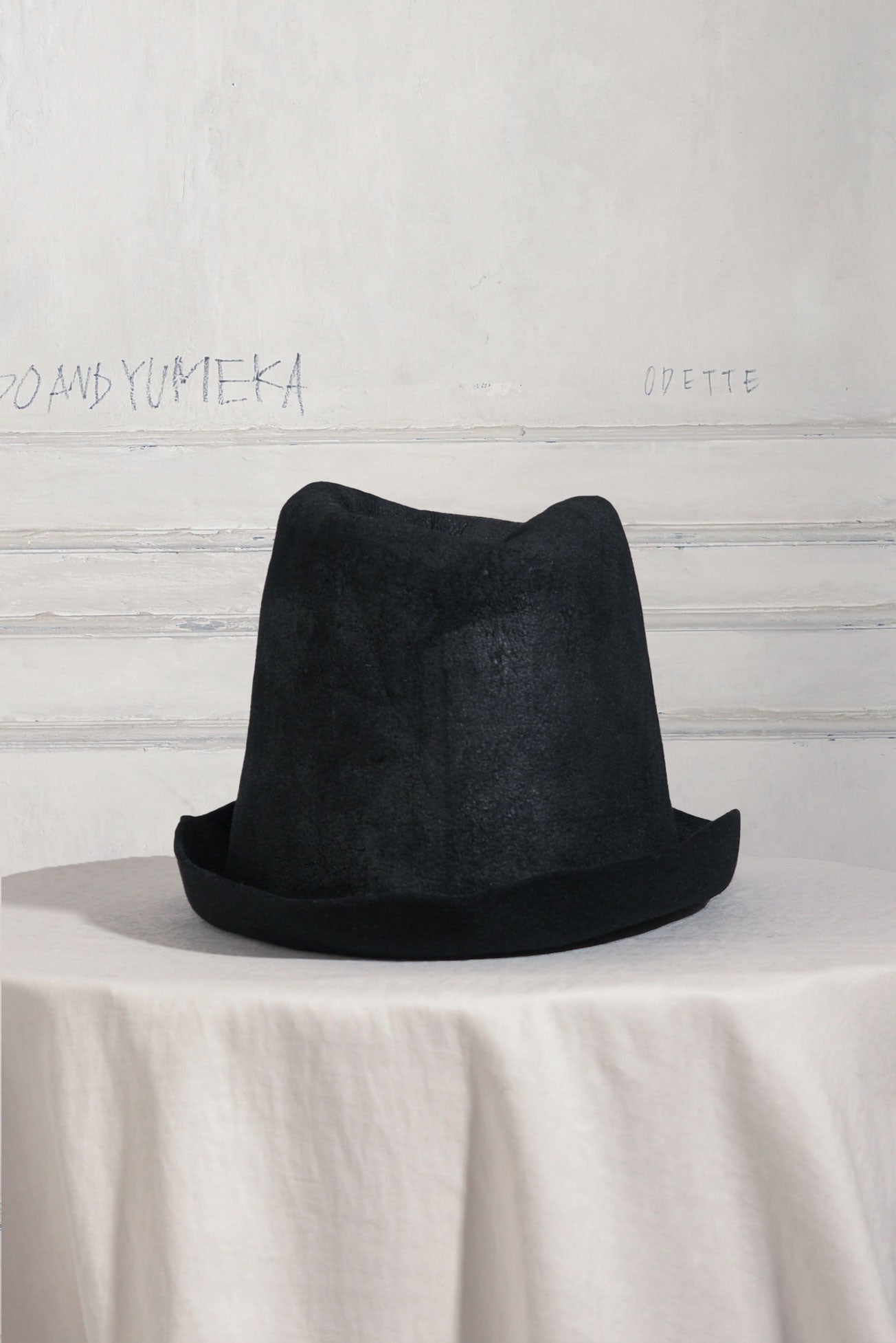 チェコ産のフェルトをベロアタッチに仕上げ、表面にコーティングを施したオブスキュールハットです。1サイズは58㎝、3サイズは60センチ設定です。