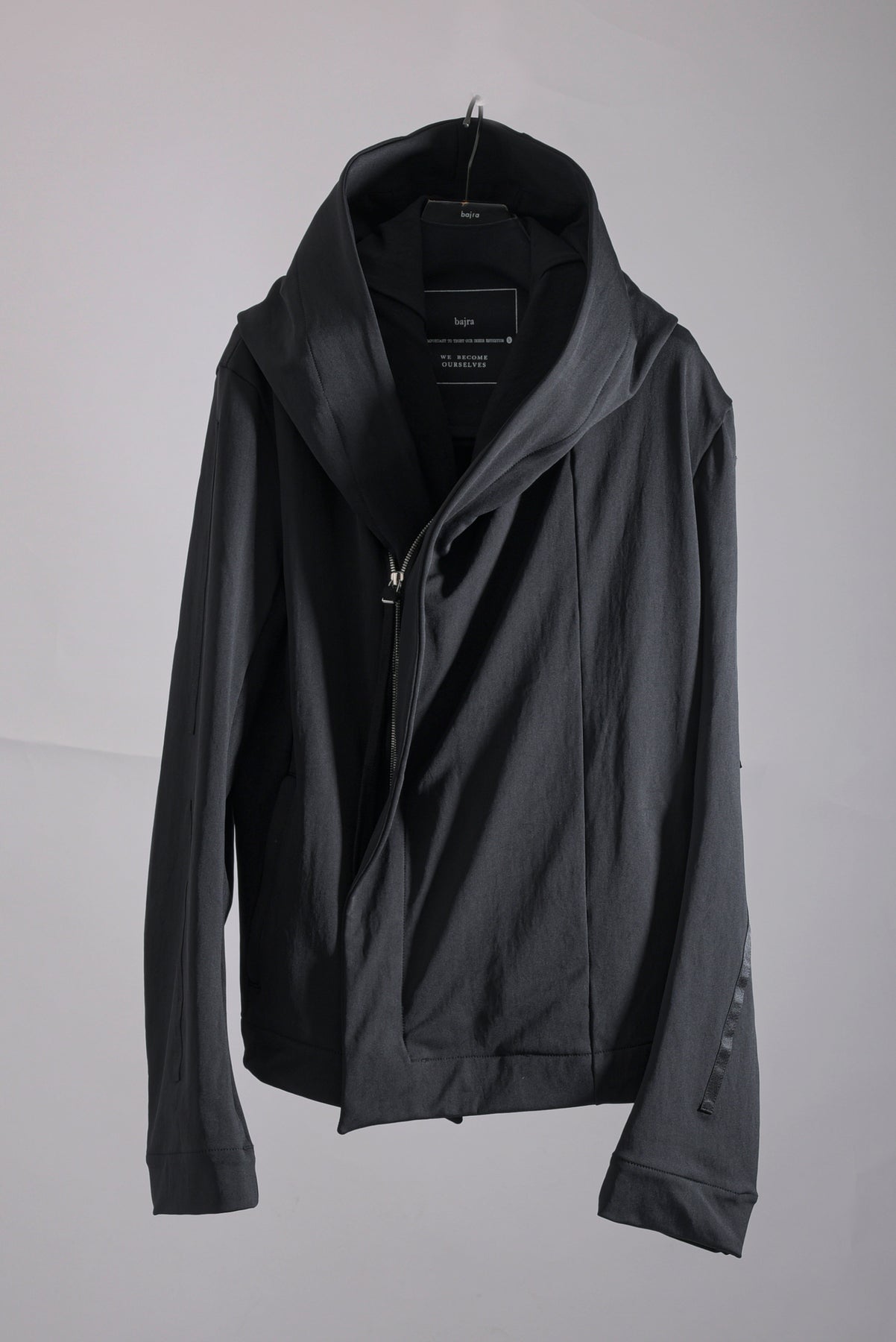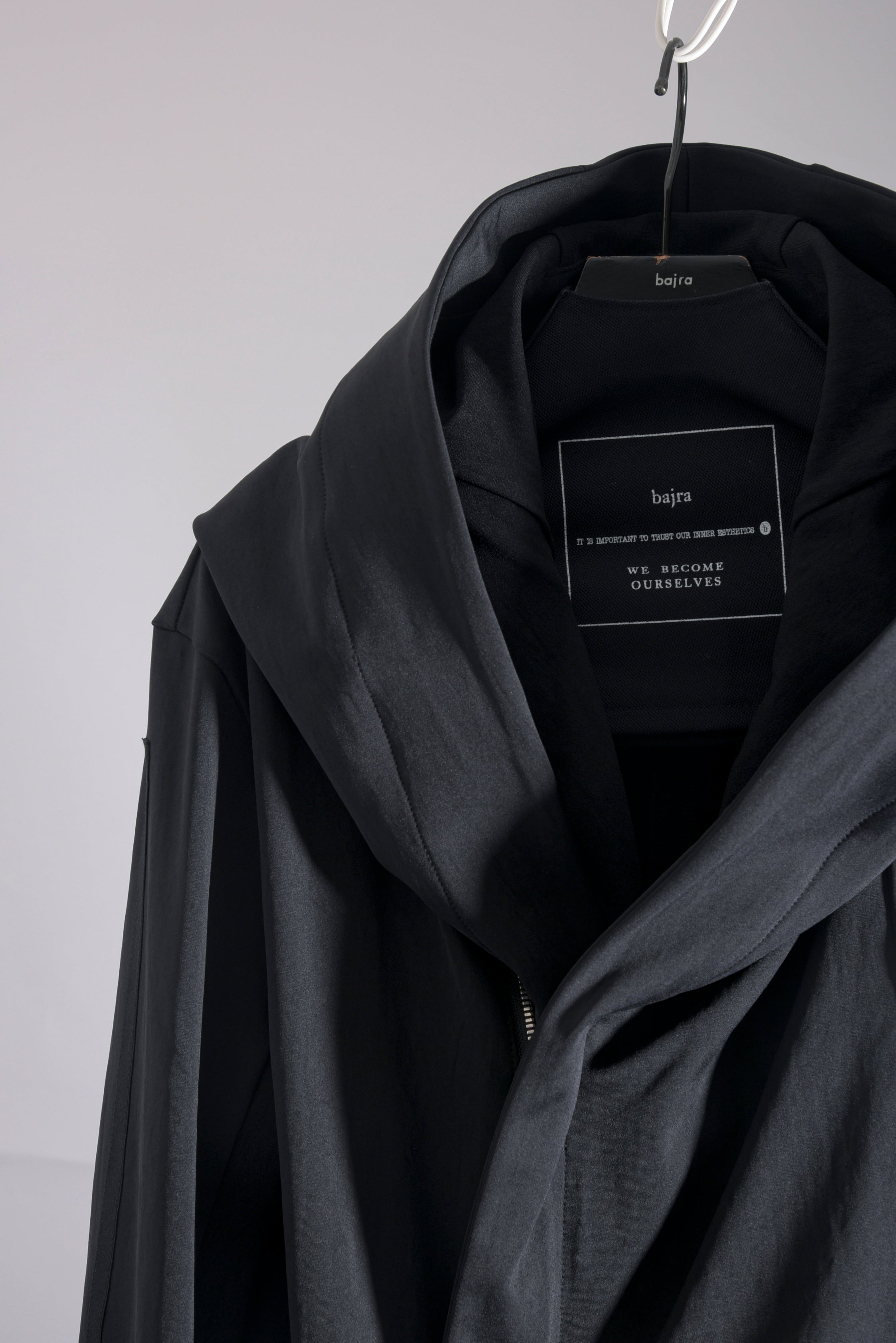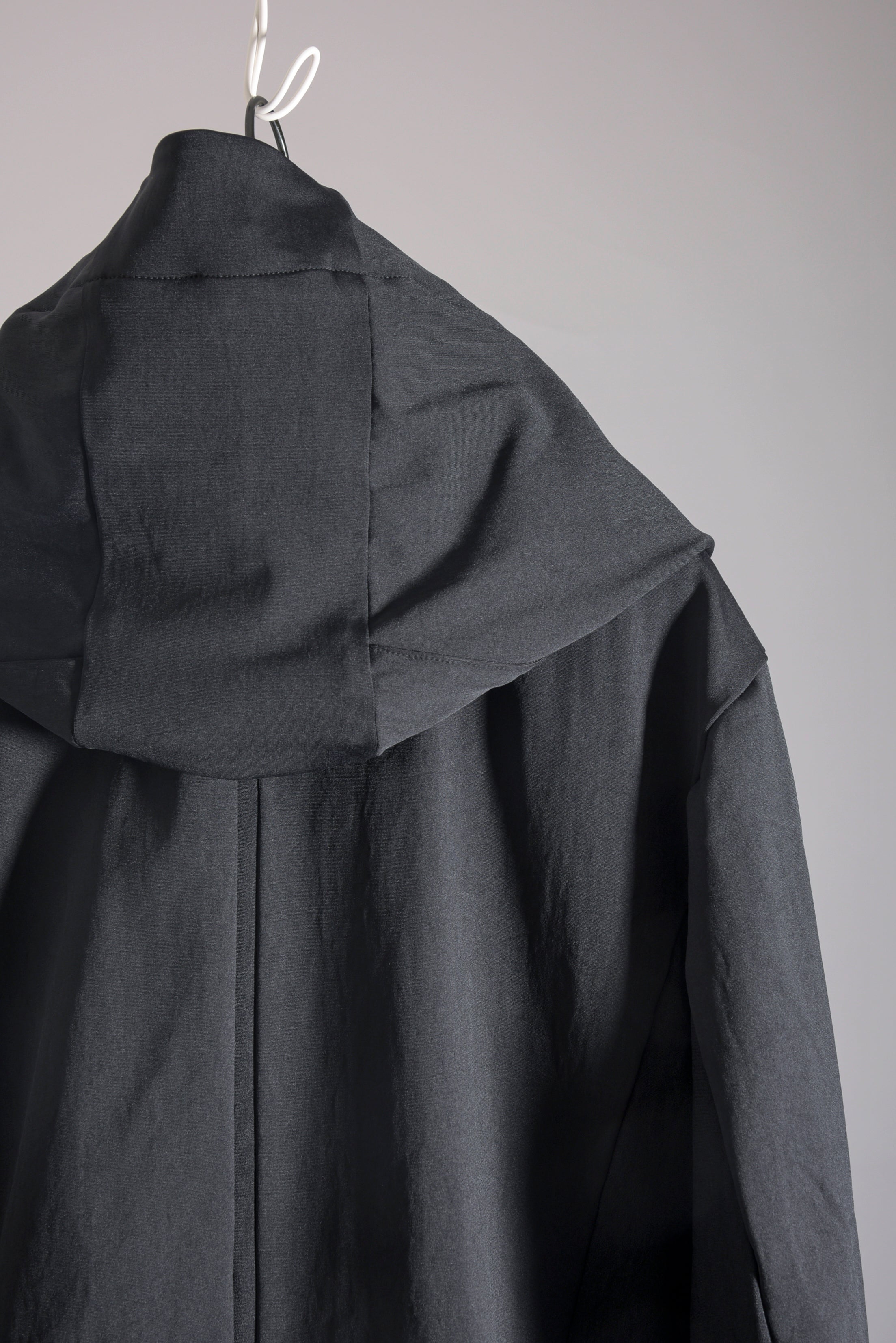 ナイロンハイテンションに塩縮加工を加え染め上げる事で、従来のハイテンションをより強力にしました。スーパーハイテンションのフードブルゾンです。ボリュームのあるボトムス等にも合わせやすい、すっきりめなサイジングのブルゾンです。コーディネートをお楽しみくださいませ。