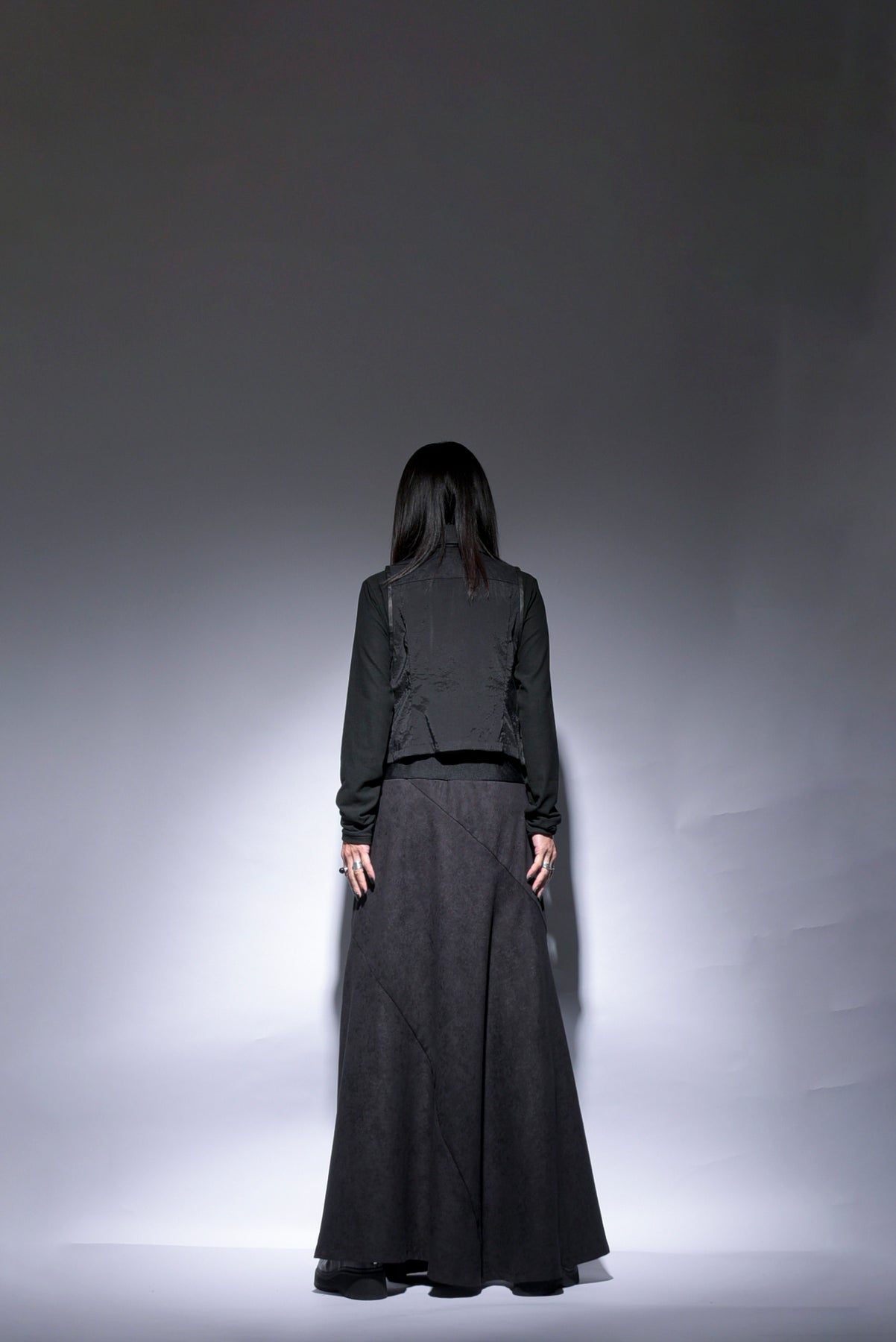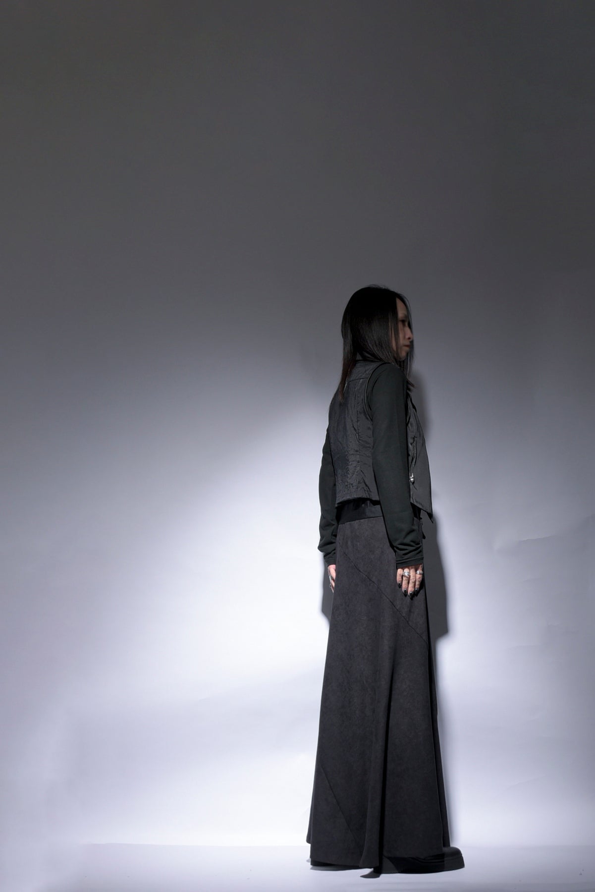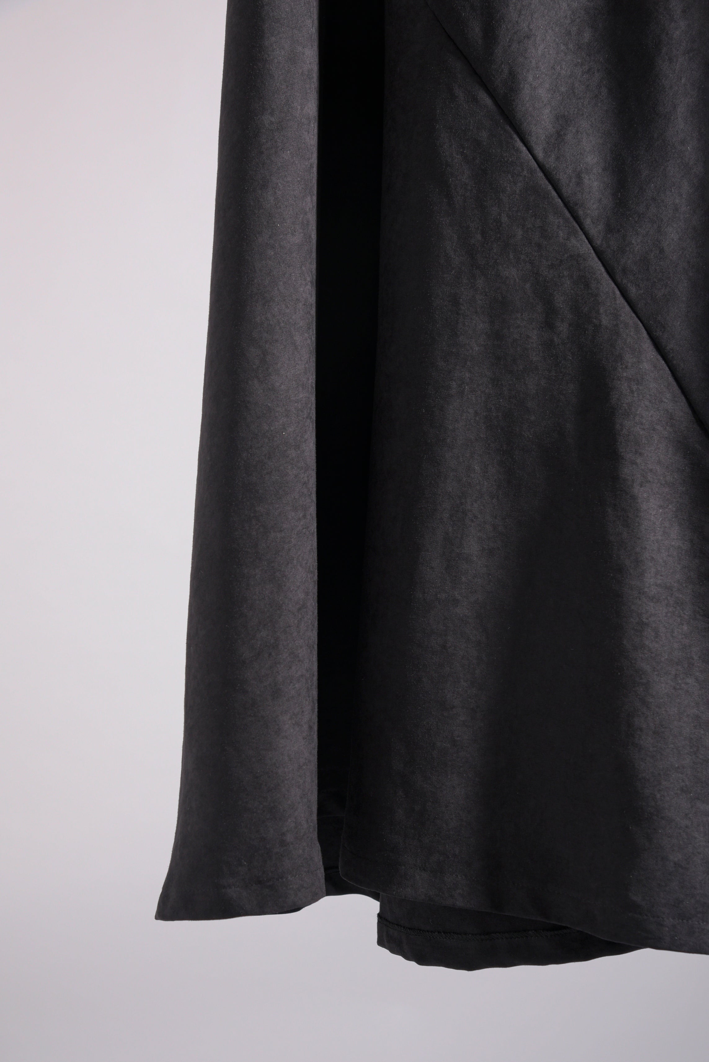 洗いをかけたような独特な風合いが特徴的なヴィンテージ割繊は、生地に程よい厚みがあり、お洗濯が可能なイージーケア性があります。カジュアルにも綺麗めにも使い勝手の良いすっきりとしたシルエットのエスカルゴスカートです。同素材でジャケット、ベストもございますのでセットでのご着用もお勧めです。
