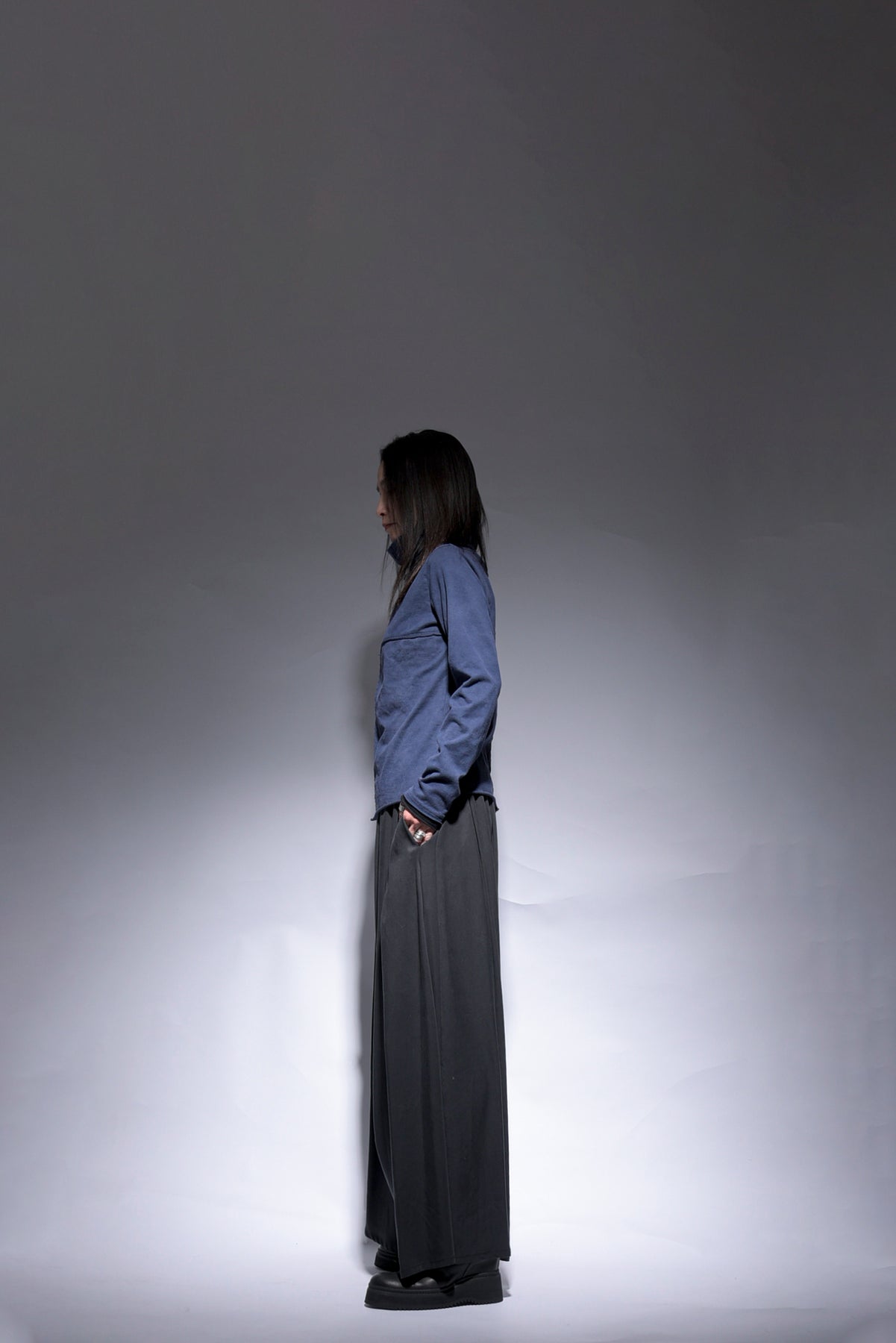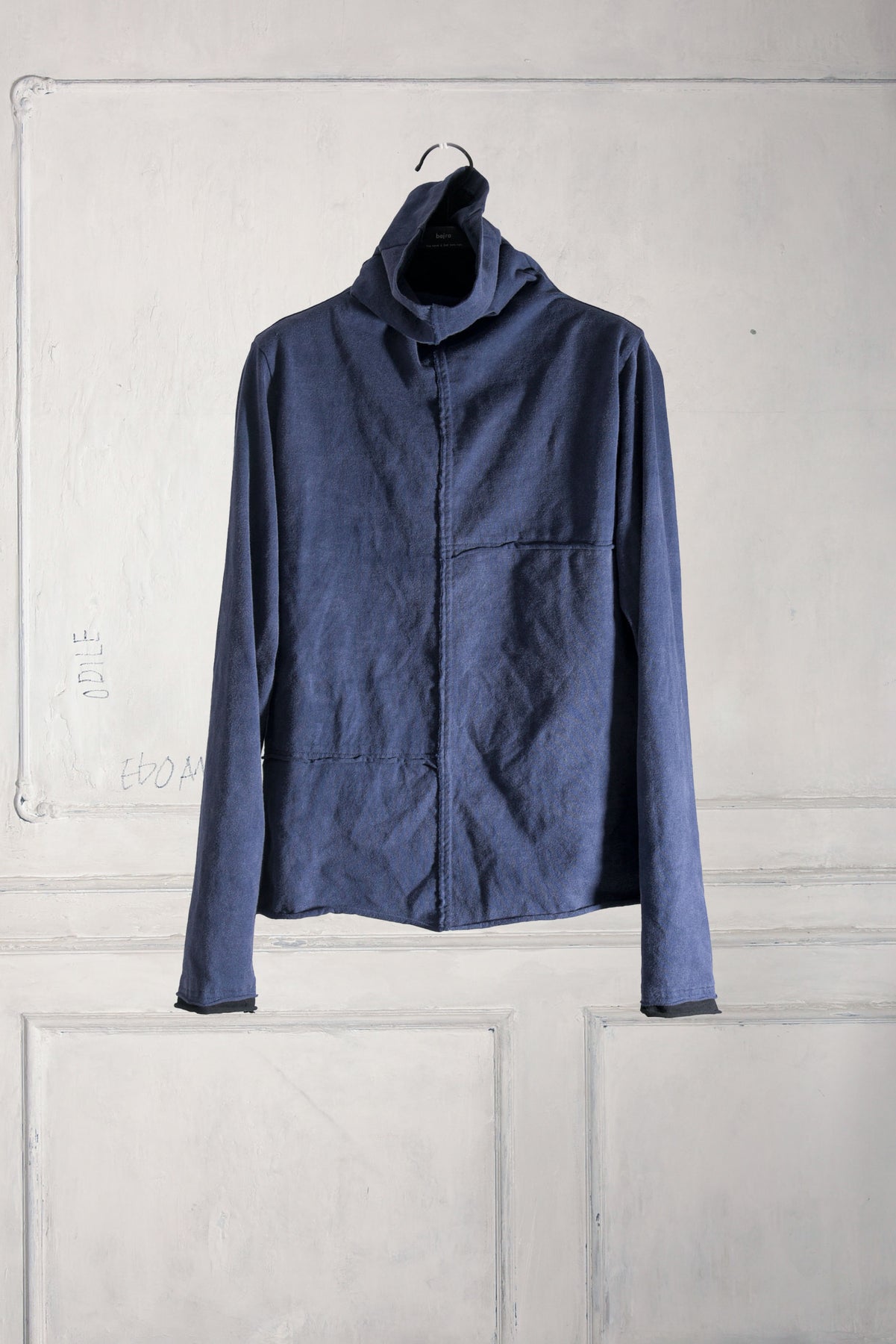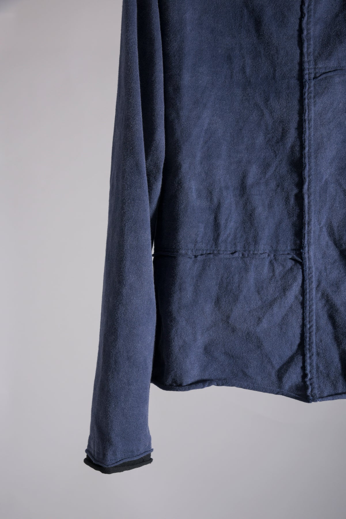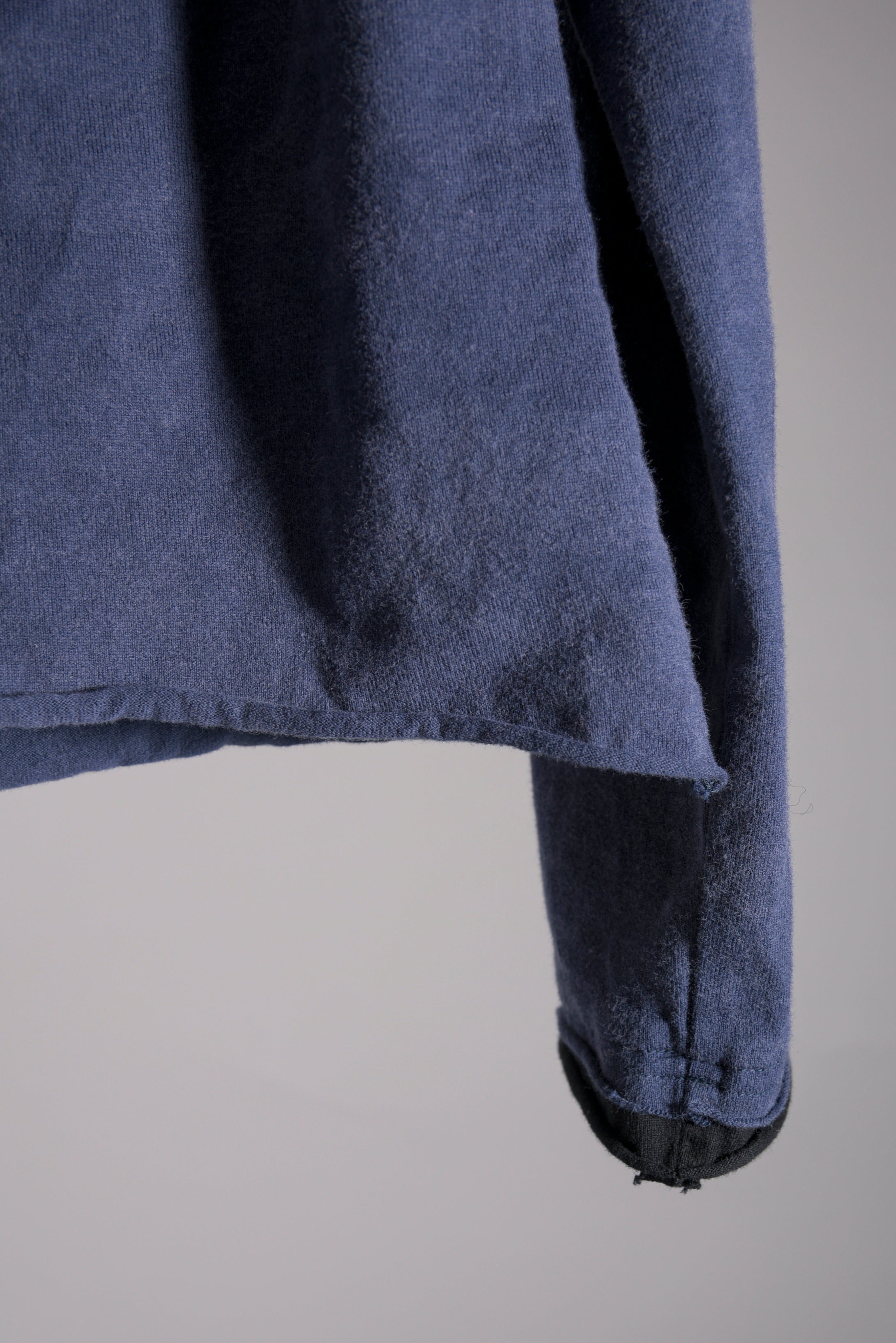 反応染料で染色をした後、脱色加工をすることにより色落ち、色ムラ感、シワ感を出したコットン天竺のプルオーバーです。断ち切り始末などのディティールにより製品洗いの風合いも程よく表現されています。インナーにもお勧めです◎ A色はブラック単色です。