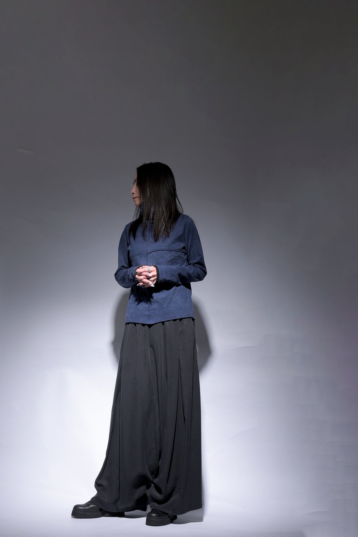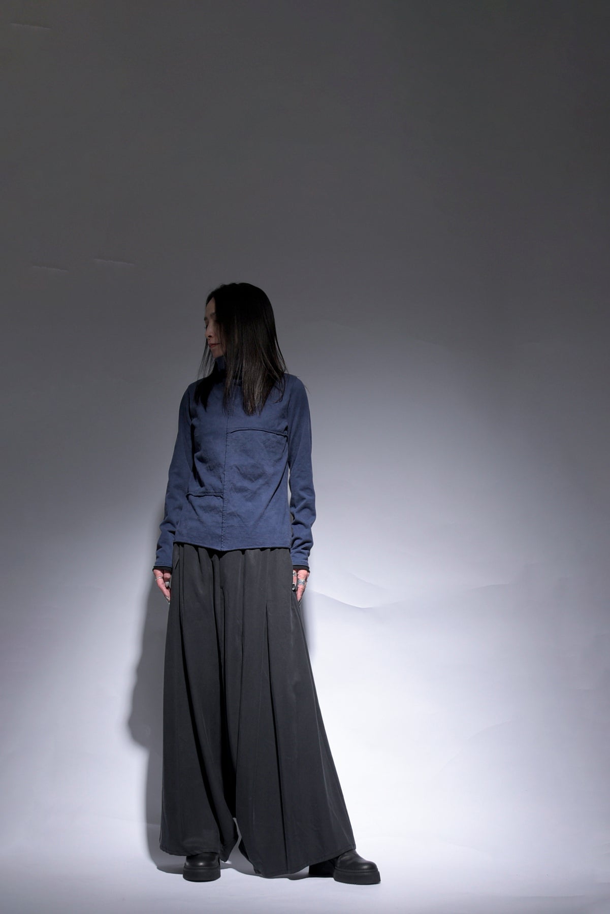 コットン天竺ウオッシュ加工 ハイネックプルオーバー