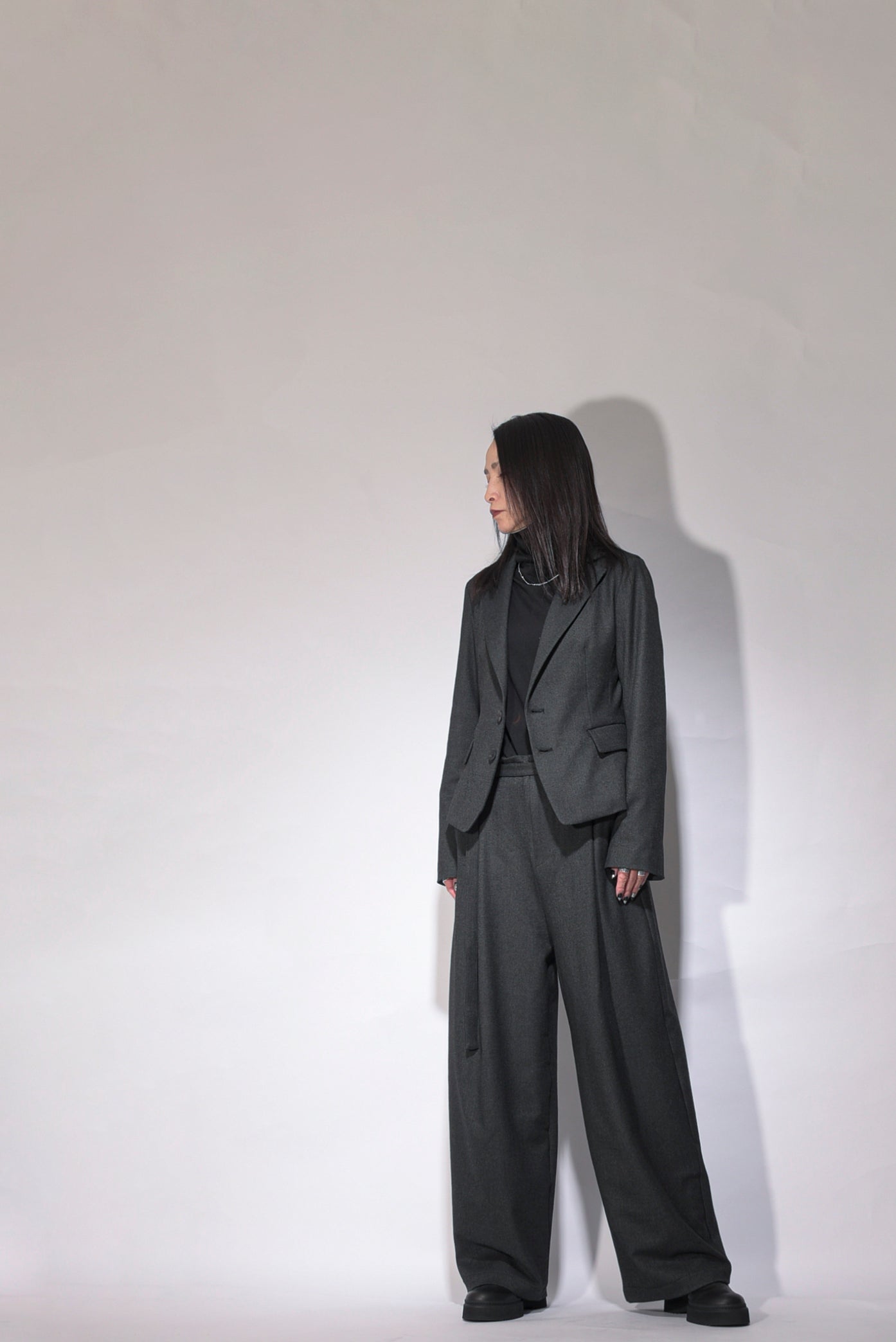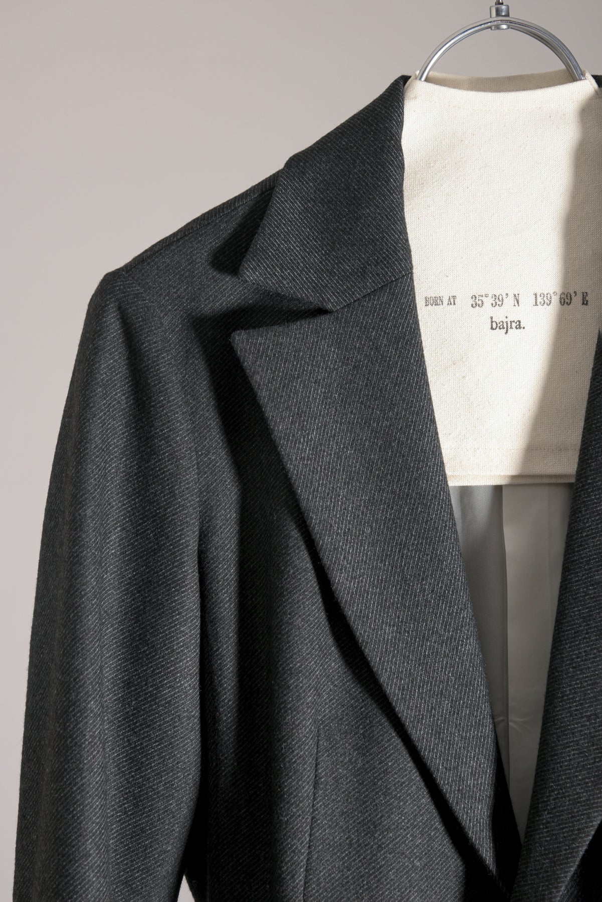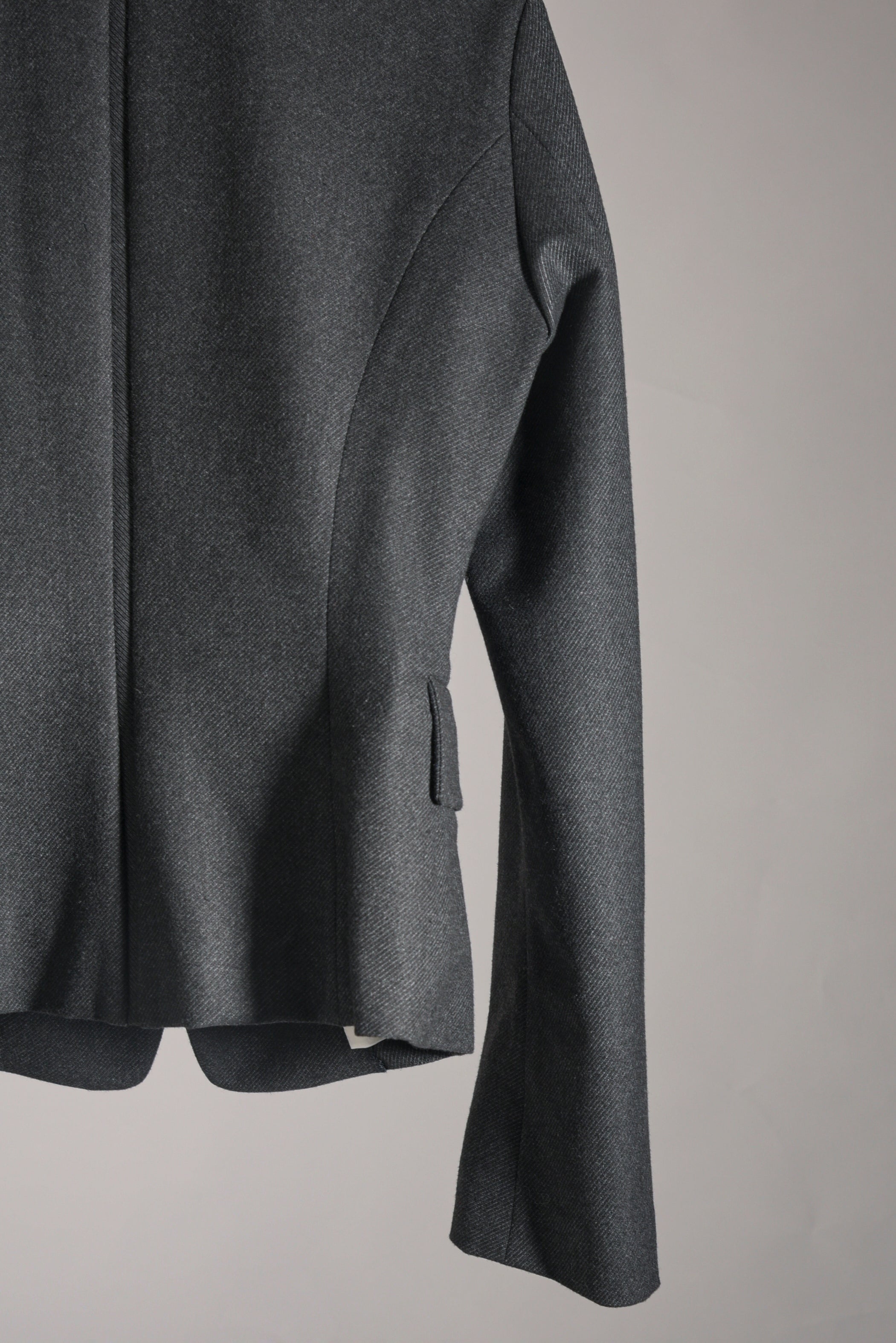 撚糸回数にこだわり抜き、最高の膨らみとキックバックの良さをもたらしました。繊細な起毛を施すことで肌触りがよく、上質な風合いのショート丈ジャケットに仕上がりました。同素材で、ベスト、ロングスカート、ワイドパンツ(ユニセックス展開)などもございますので、セットアップでのご着用もお勧めです。