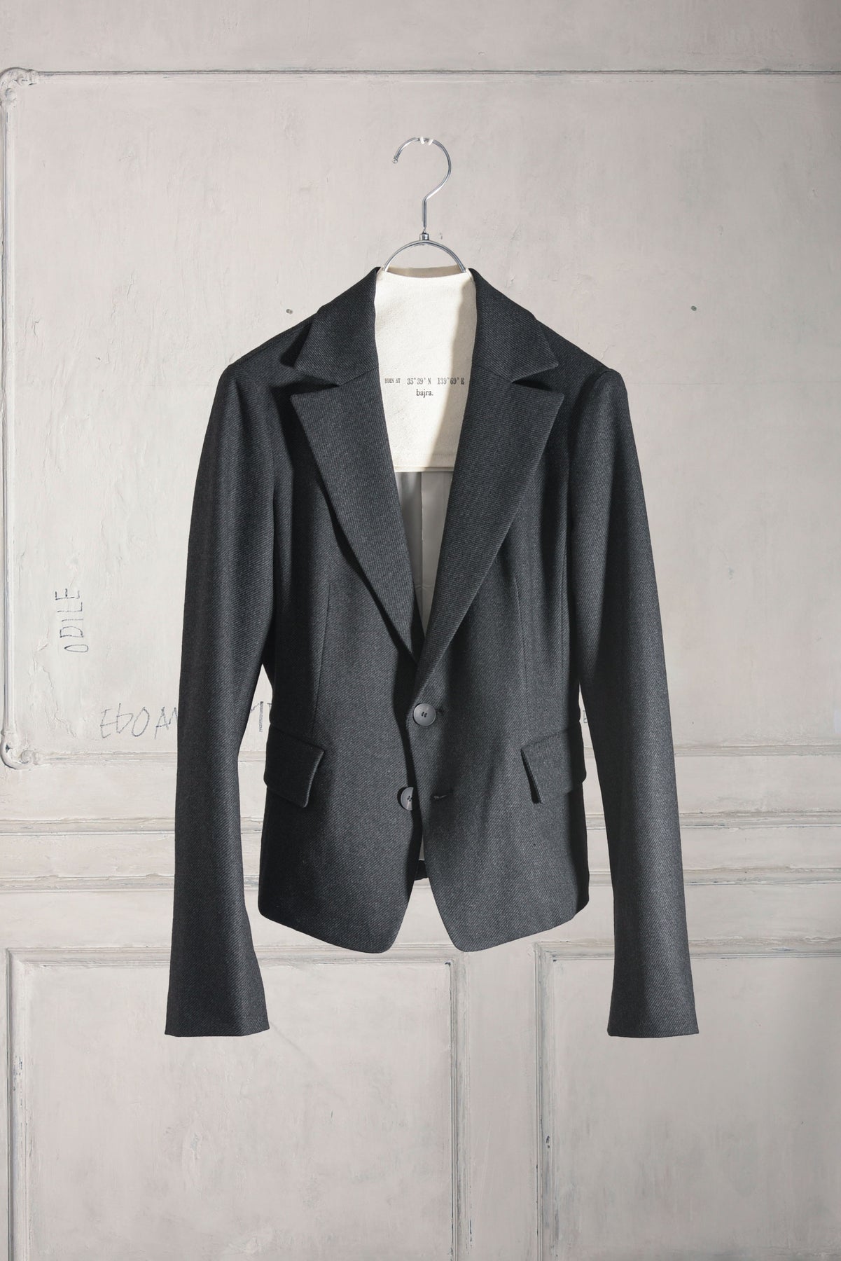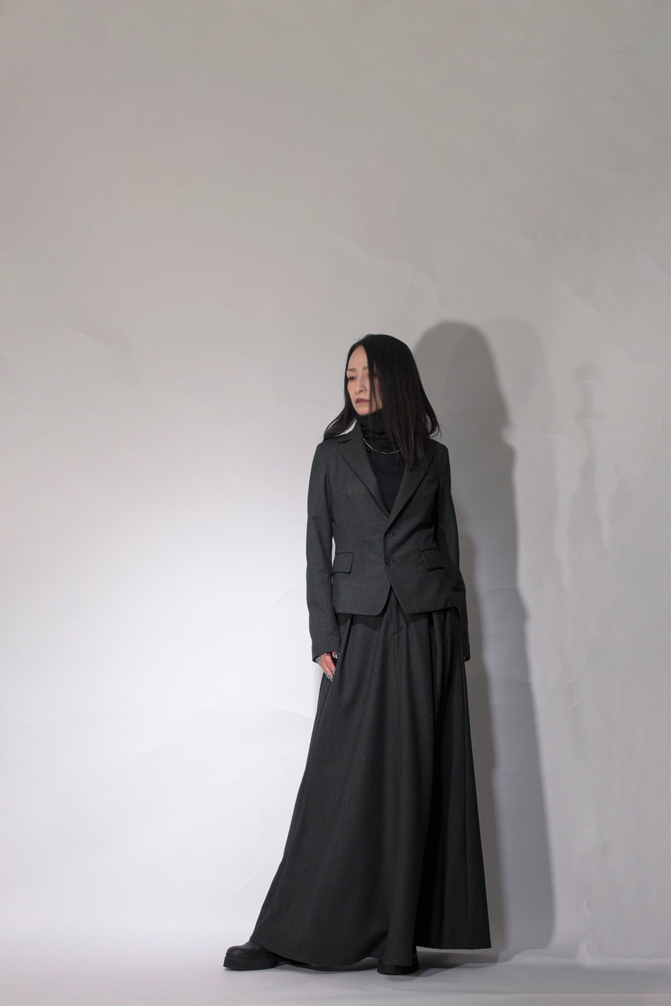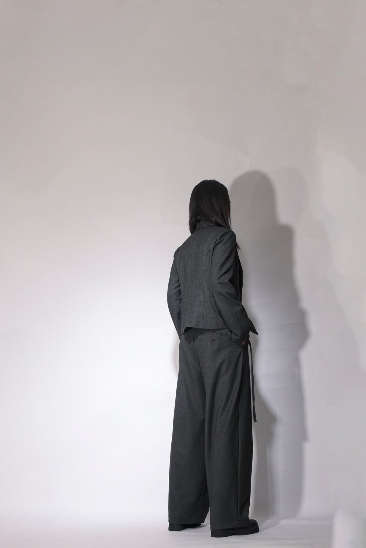 撚糸回数にこだわり抜き、最高の膨らみとキックバックの良さをもたらしました。繊細な起毛を施すことで肌触りがよく、上質な風合いのショート丈ジャケットに仕上がりました。同素材で、ベスト、ロングスカート、ワイドパンツ(ユニセックス展開)などもございますので、セットアップでのご着用もお勧めです。