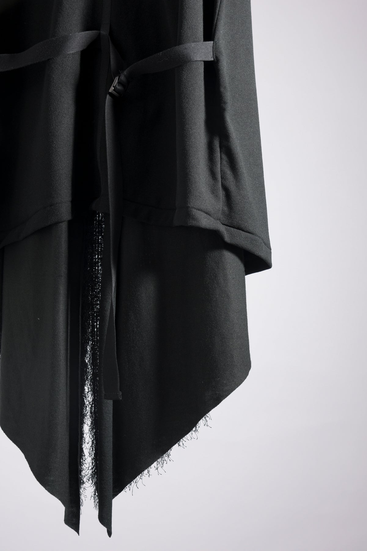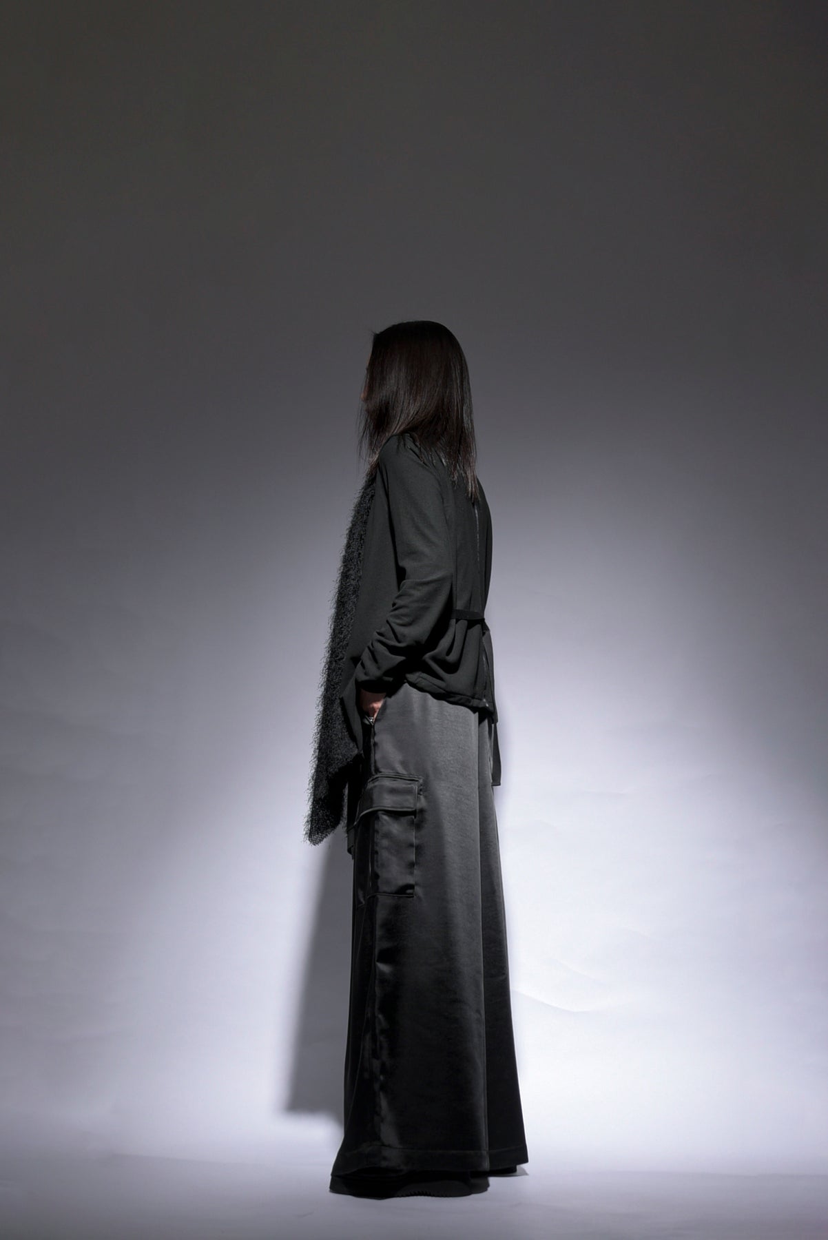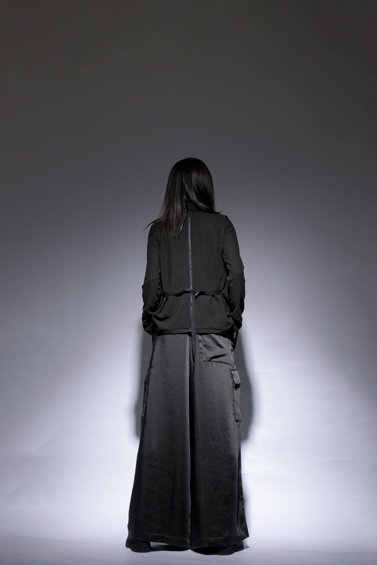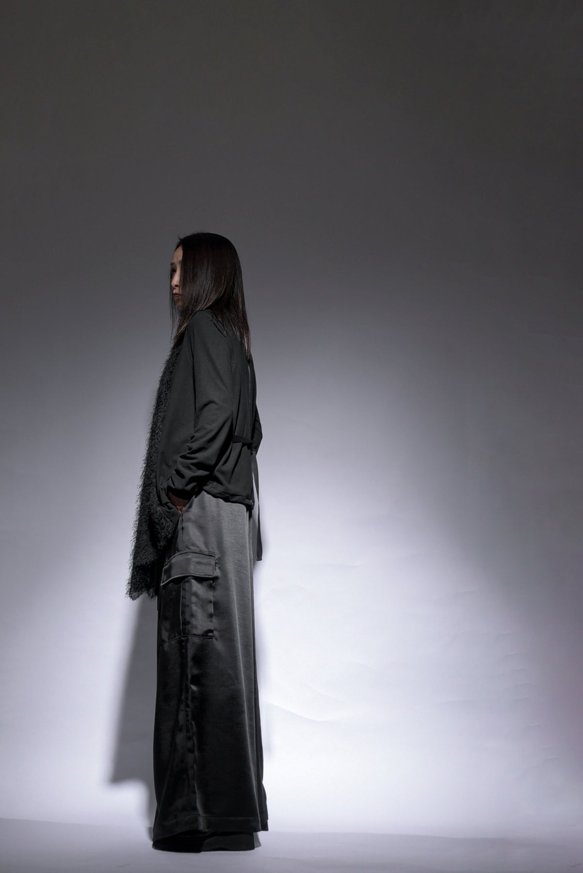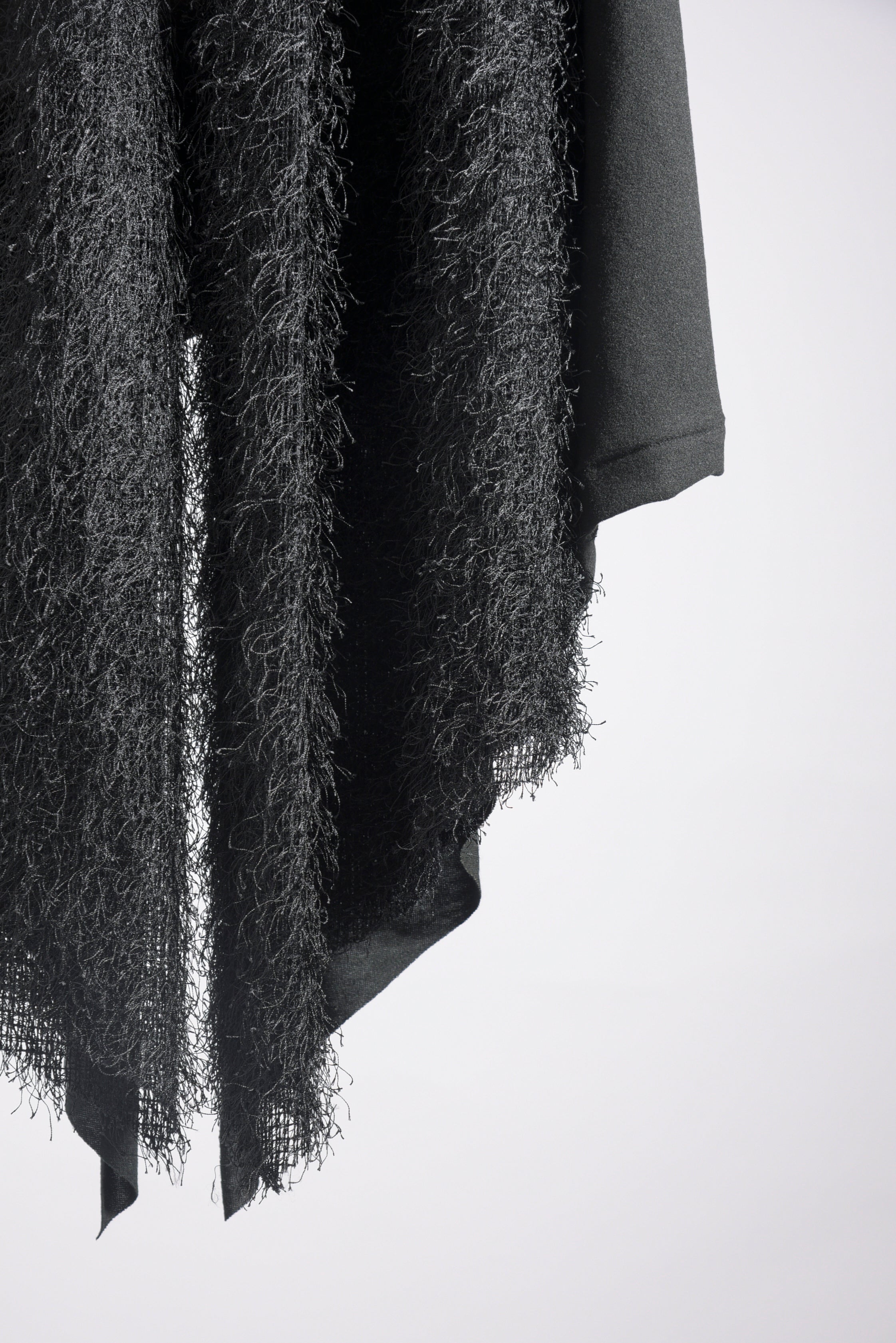 バルキー性のある細番手の糸で構成し、特殊起毛によって膨らみとソフト感を併せ持ったストレッチジャージーにたっぷりのシャギー素材を掛け合わせたジレです。
