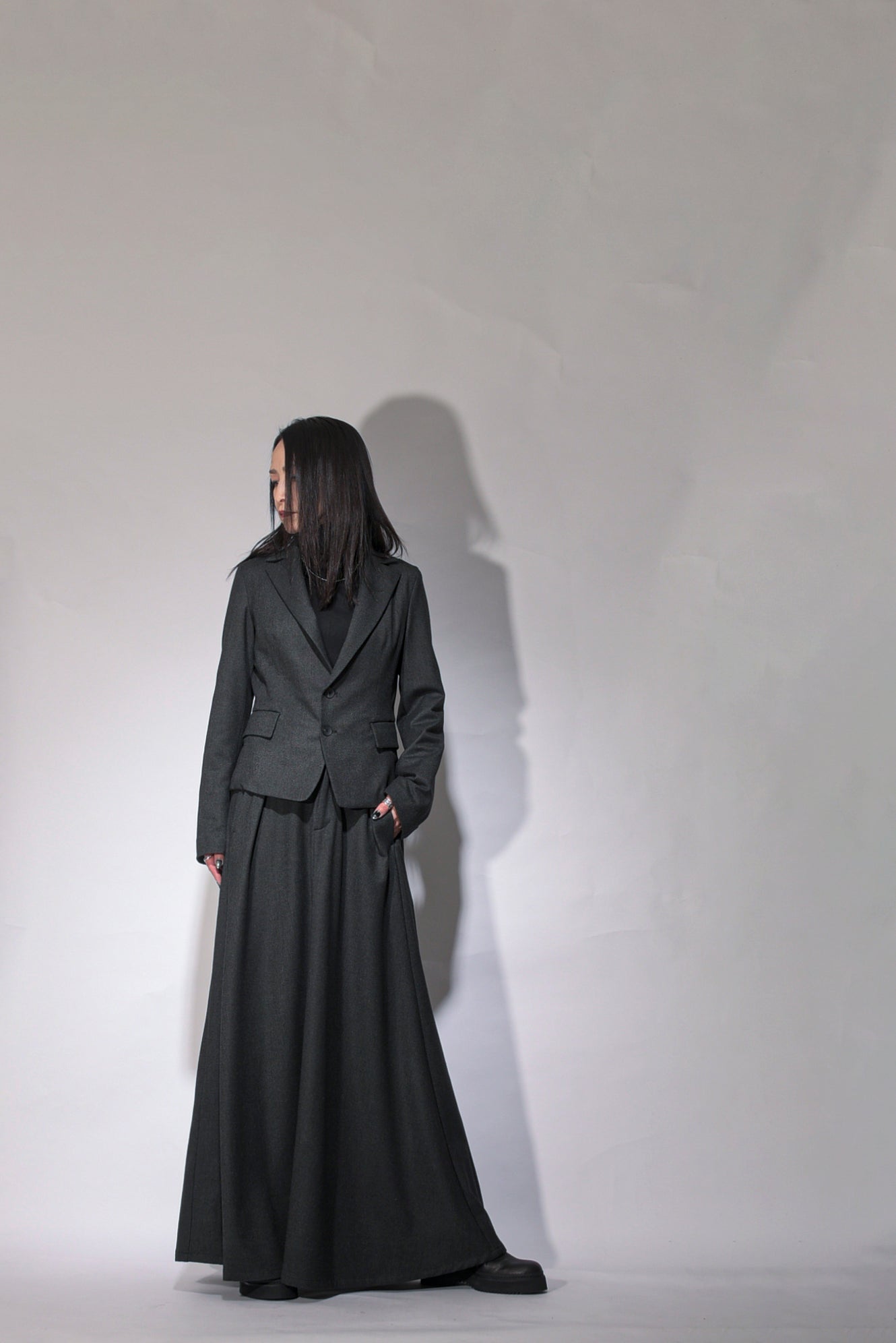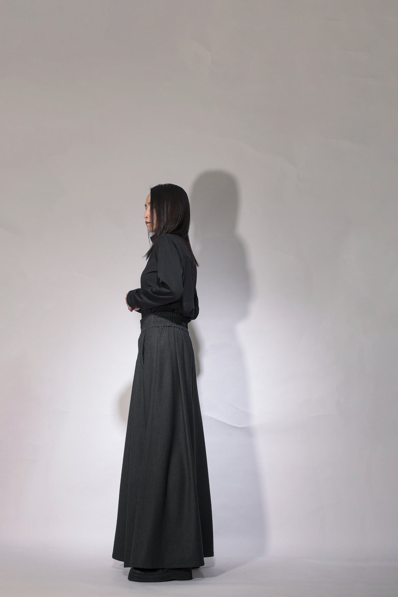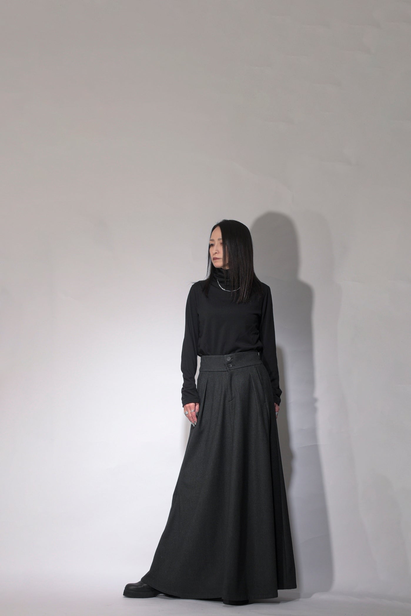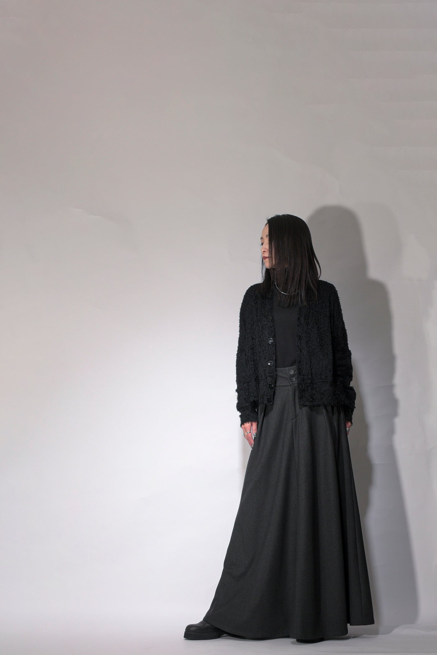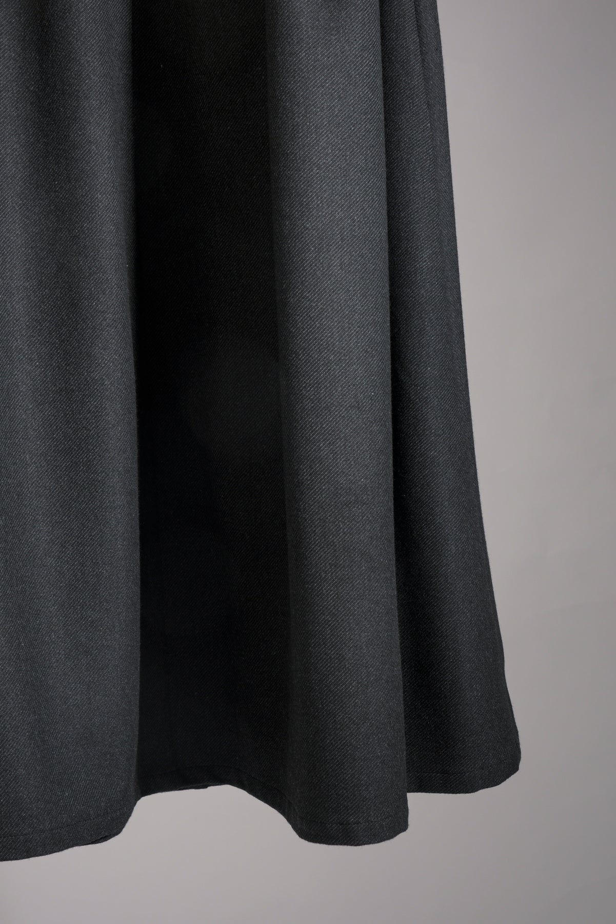 撚糸回数にこだわり抜き、最高の膨らみとキックバックの良さをもたらしました。繊細な起毛を施すことで肌触りがよく、上質な風合いのAラインスカートに仕上がりました。同素材でジャケット、ベスト、ワイドパンツ(ユニセックス展開)などもございますので、セットアップでのご着用もお勧めです。