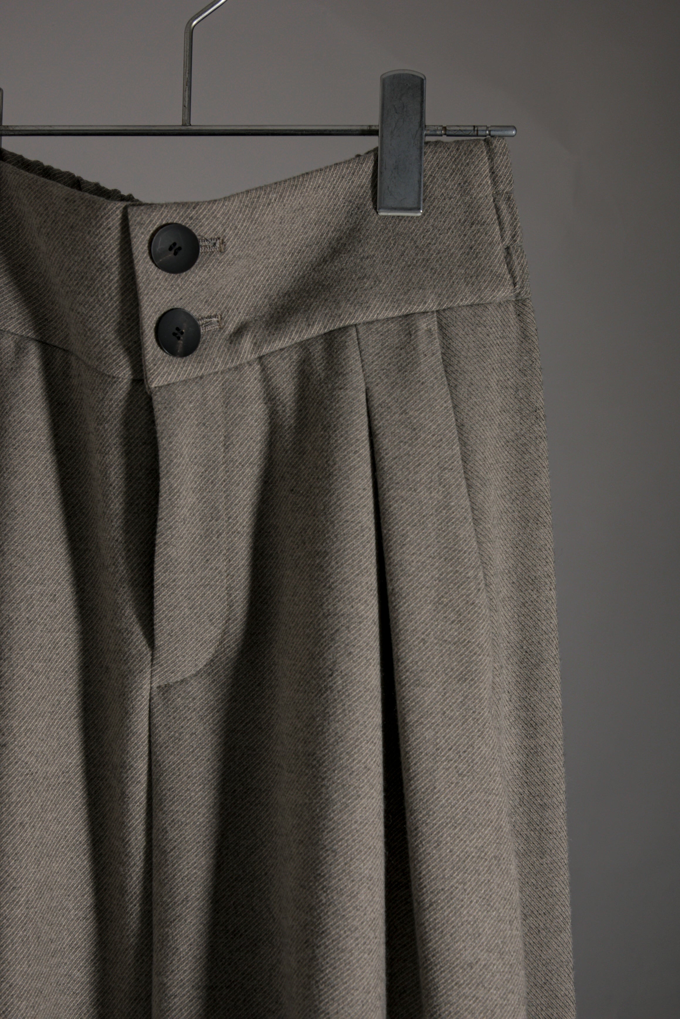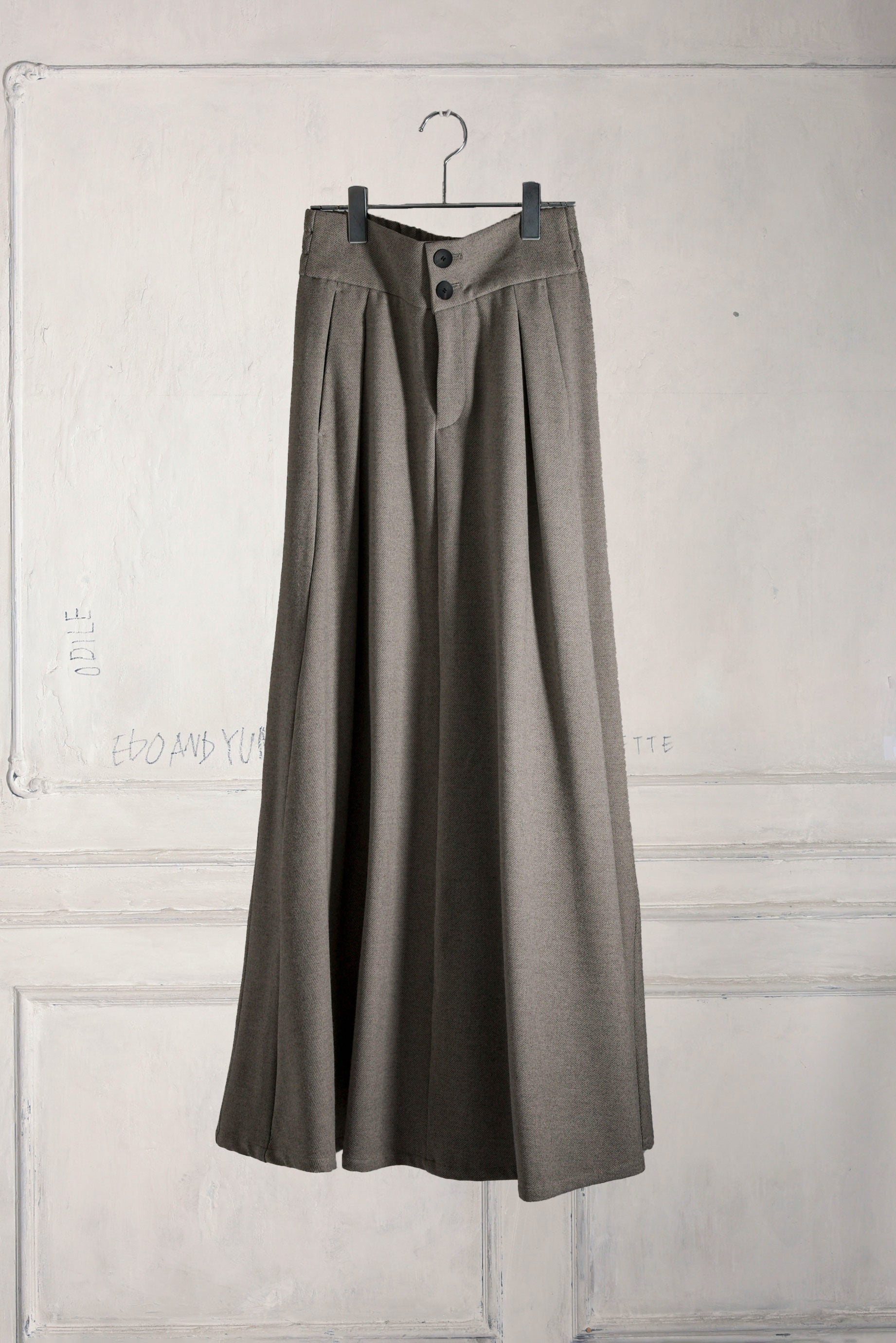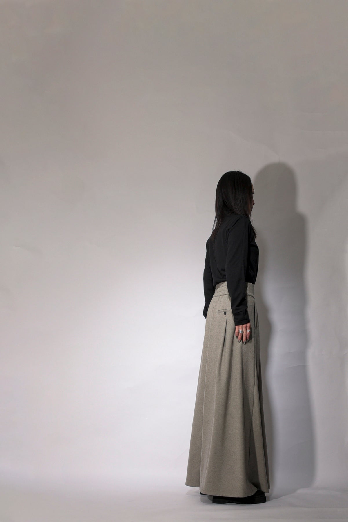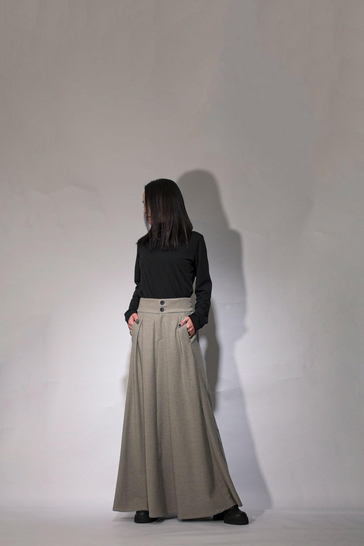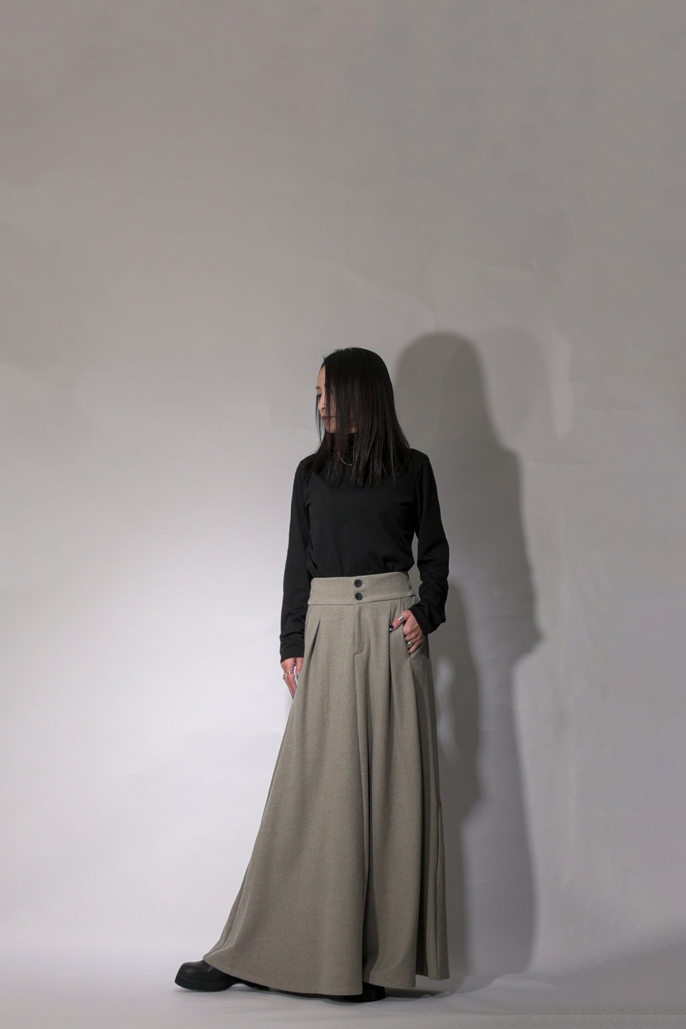 撚糸回数にこだわり抜き、最高の膨らみとキックバックの良さをもたらしました。繊細な起毛を施すことで肌触りがよく、上質な風合いのAラインスカートに仕上がりました。同素材でジャケット、ベスト、ワイドパンツ(ユニセックス展開)などもございますので、セットアップでのご着用もお勧めです。