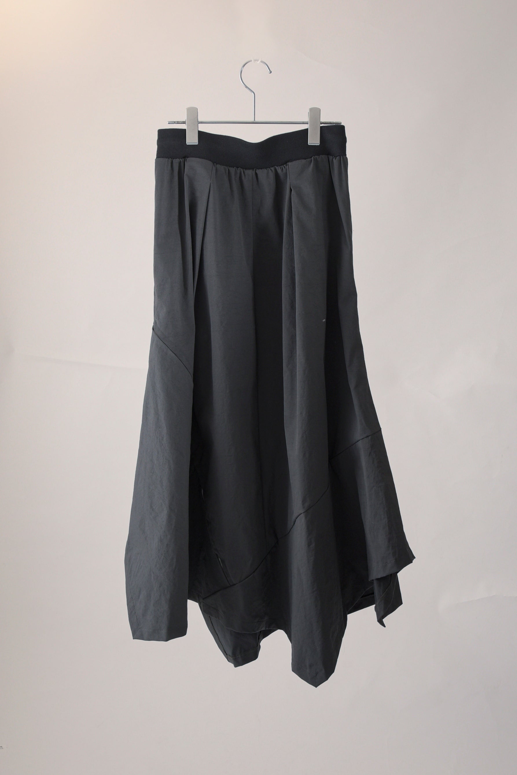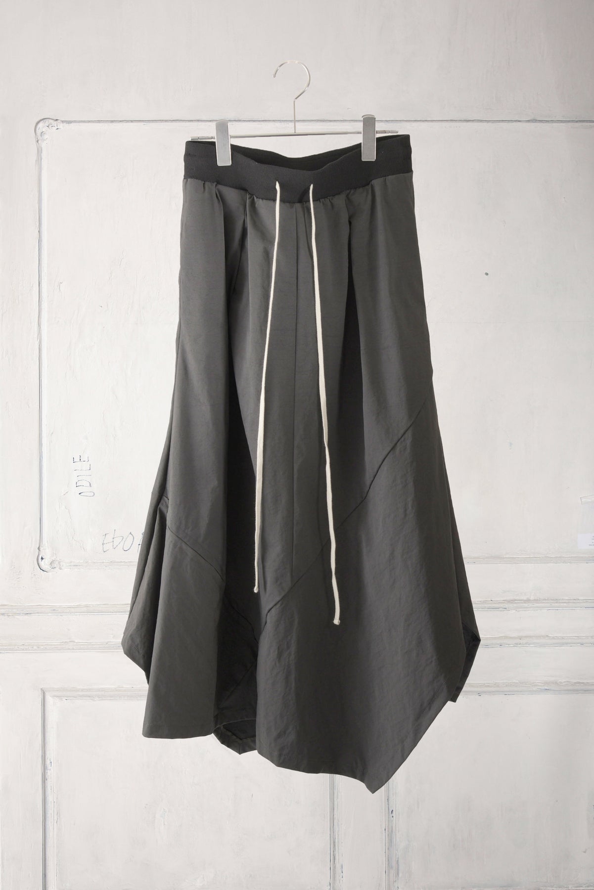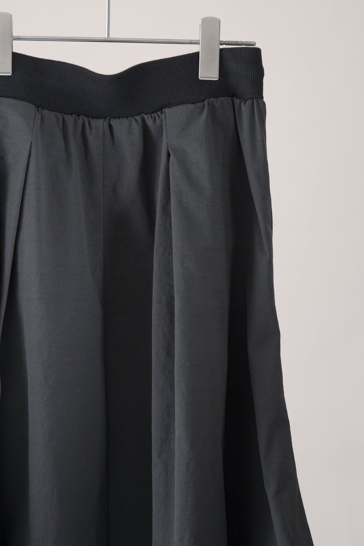 This is an ultra-lightweight A-line voluminous skirt made of split weave de Chine with a slight chin-tu finish. The design is wrapped in tulle on the de Chine body, and the flowing silhouette when moving is very beautiful. This is a piece that you can enjoy for a long time with a variety of coordinations, whether it's a dress or casual outfit.