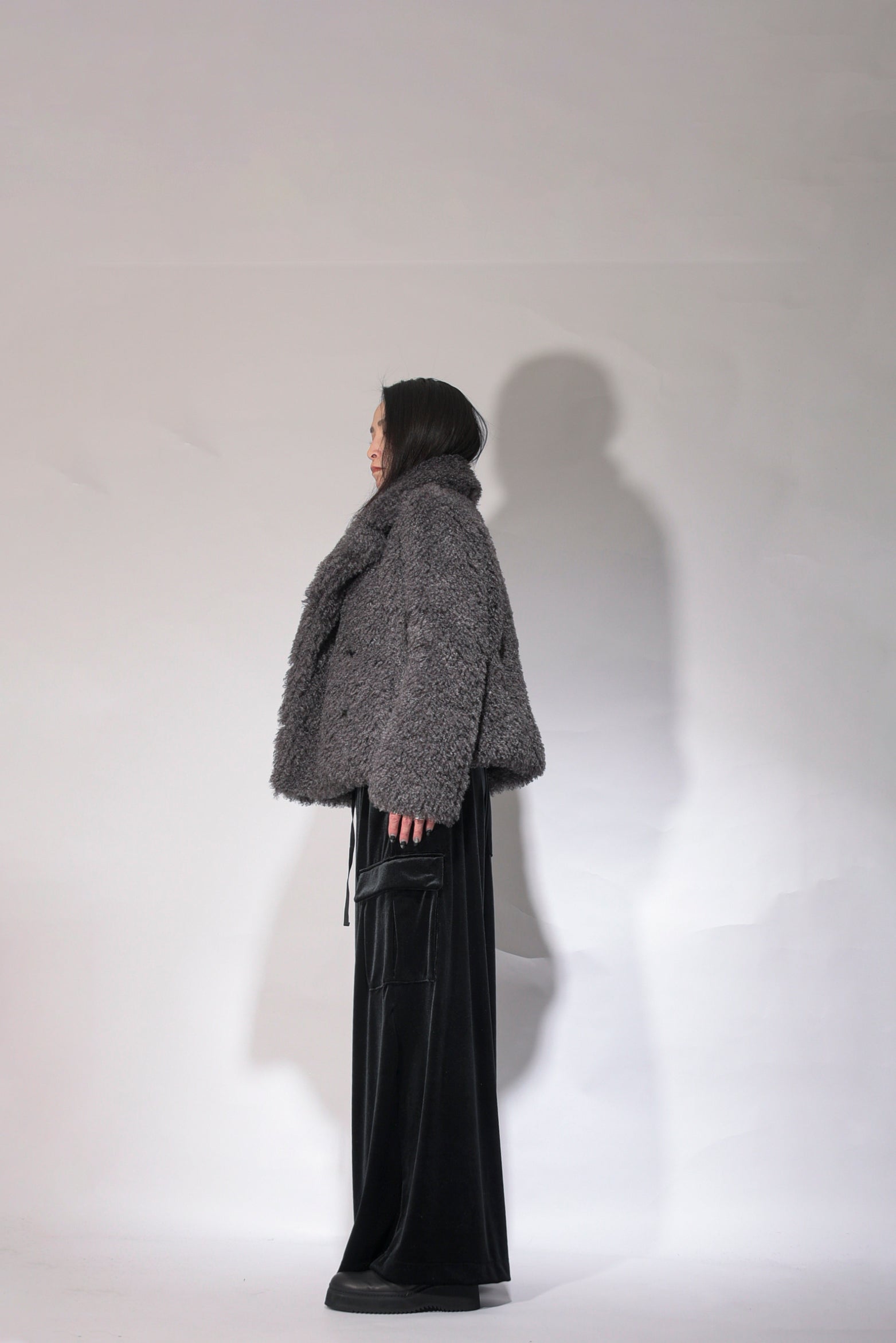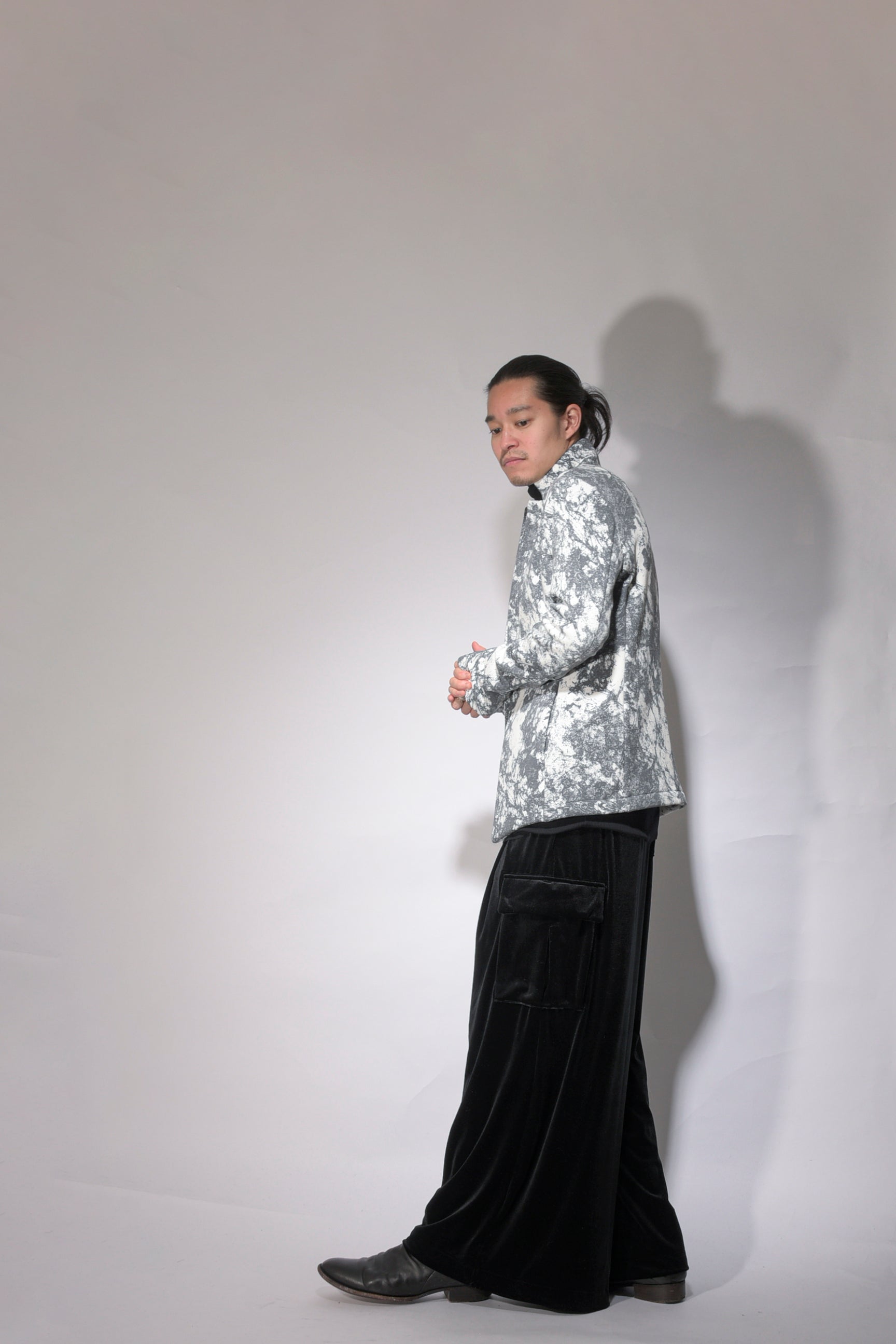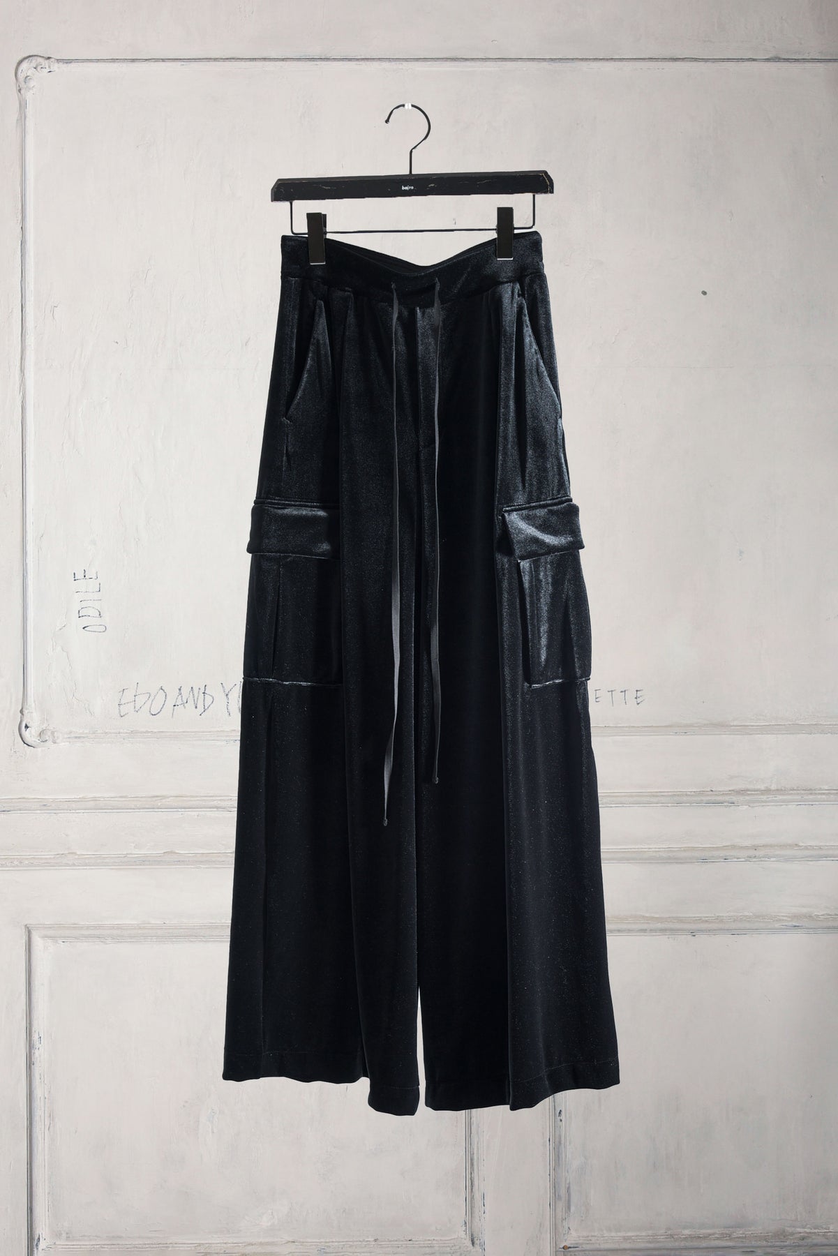 Made of Meryl microfiber yarn, it has a delicate touch and has a nice stretch. In addition to its matte look, it has been made into a high-tension material that has a heat storage function thanks to thermostore processing. Stress-free soft sarouel-based cargo pants. Available in unisex sizes: 1 (women's size), 2 (boy's size), and 3 (men's size).
