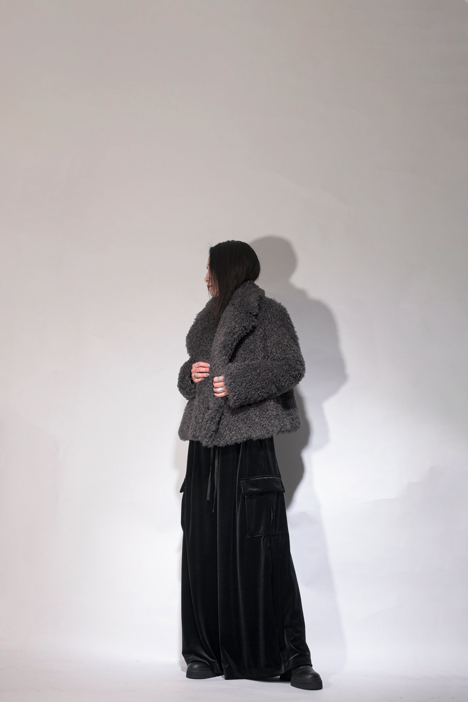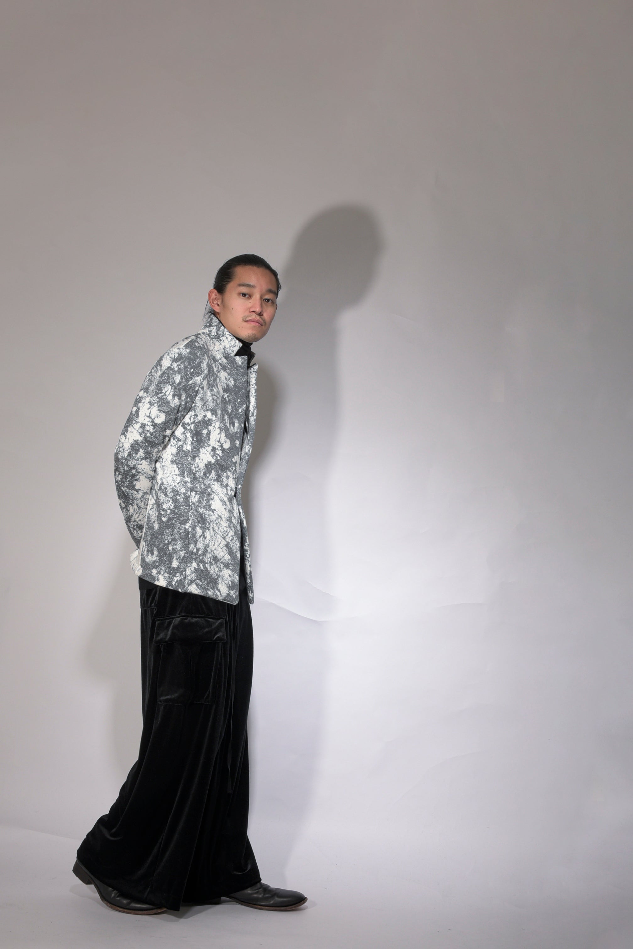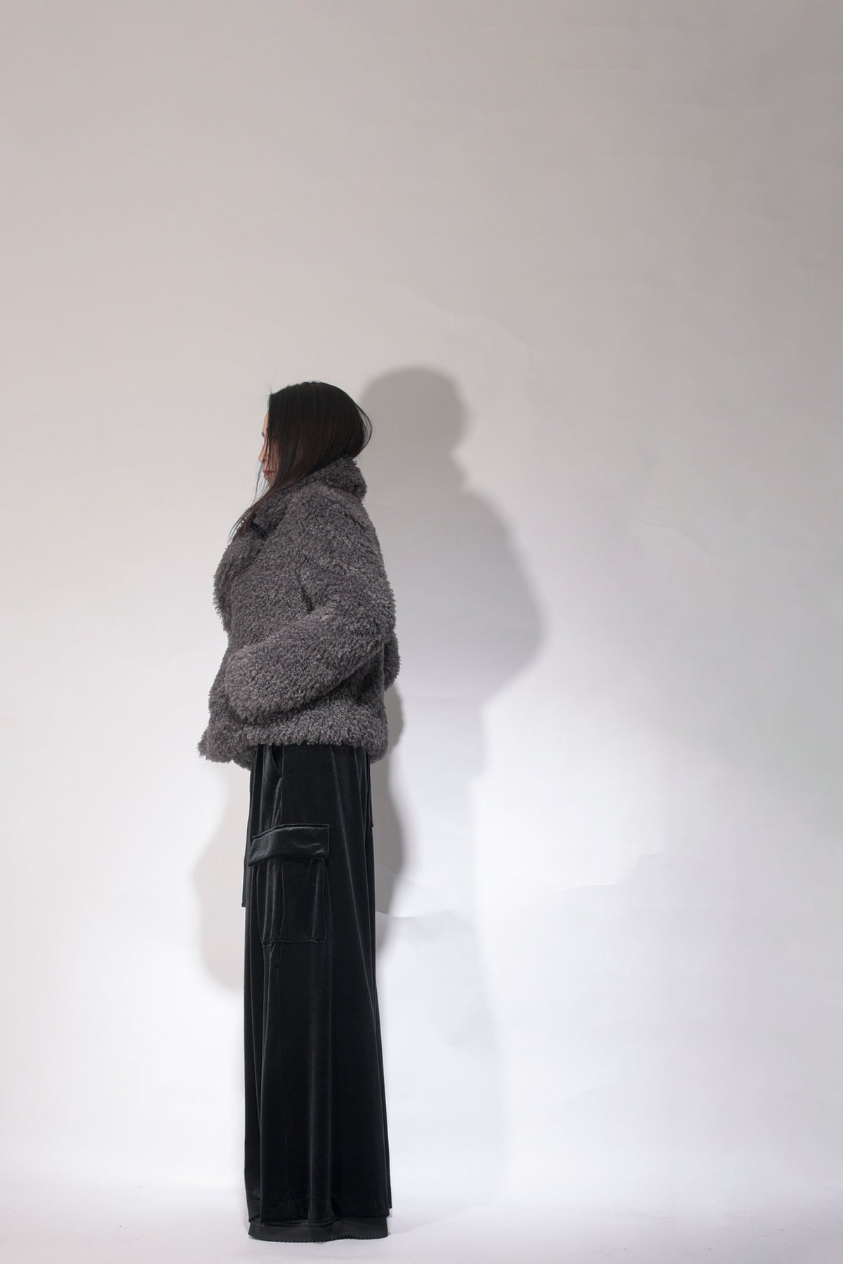 Made of Meryl microfiber yarn, it has a delicate touch and has a nice stretch. In addition to its matte look, it has been made into a high-tension material that has a heat storage function thanks to thermostore processing. Stress-free soft sarouel-based cargo pants. Available in unisex sizes: 1 (women's size), 2 (boy's size), and 3 (men's size).