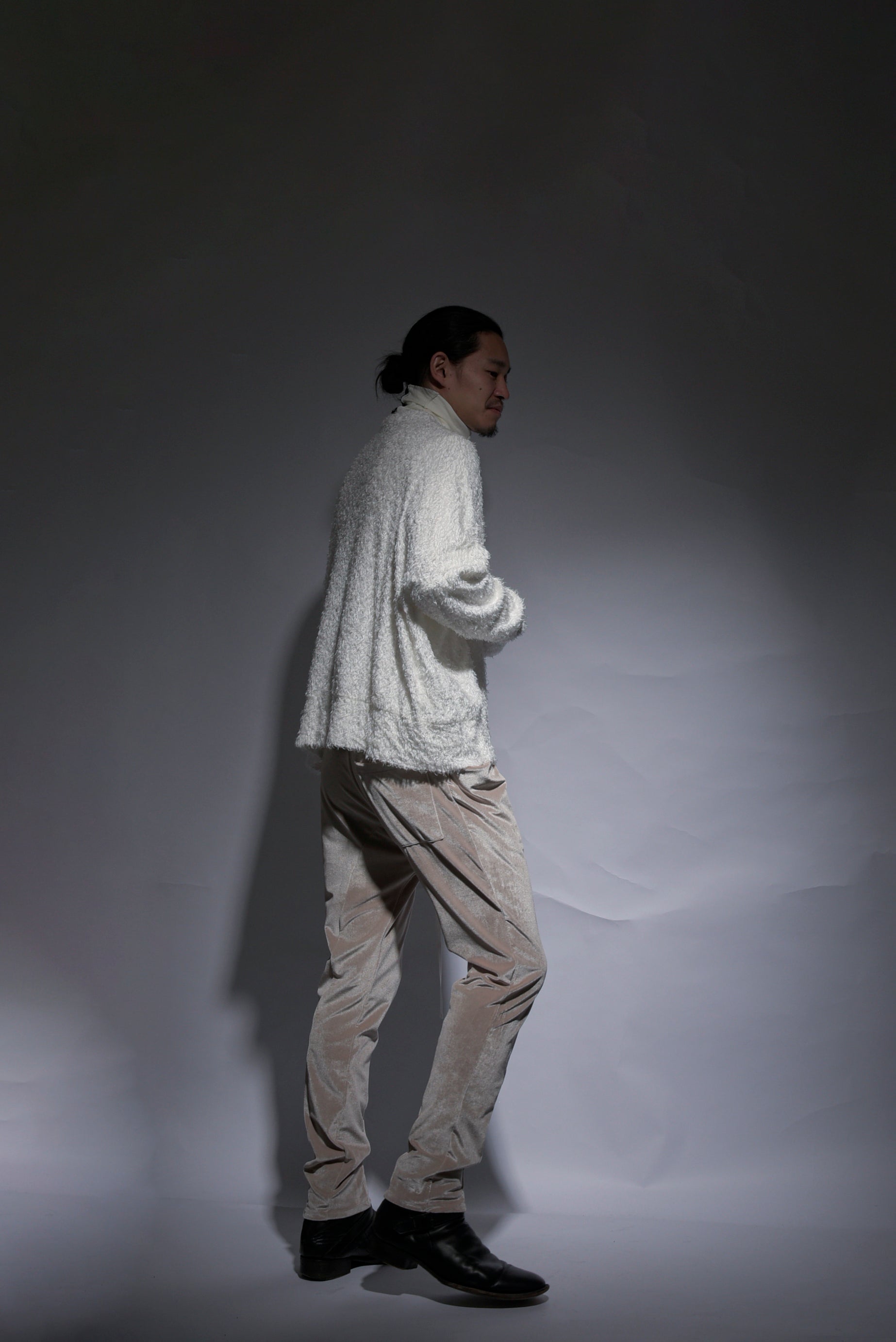Made of Meryl microfiber yarn, it has a delicate touch and has a nice stretch. In addition to its matte look, it has been made into a high-tension material that has a heat storage function thanks to thermostore processing. Stress-free soft sarouel-based cargo pants. Available in unisex sizes: 1 (women's size), 2 (boy's size), and 3 (men's size).
