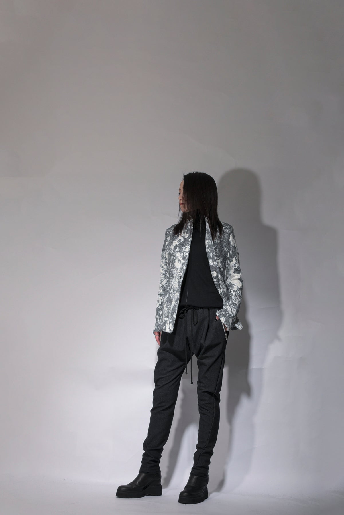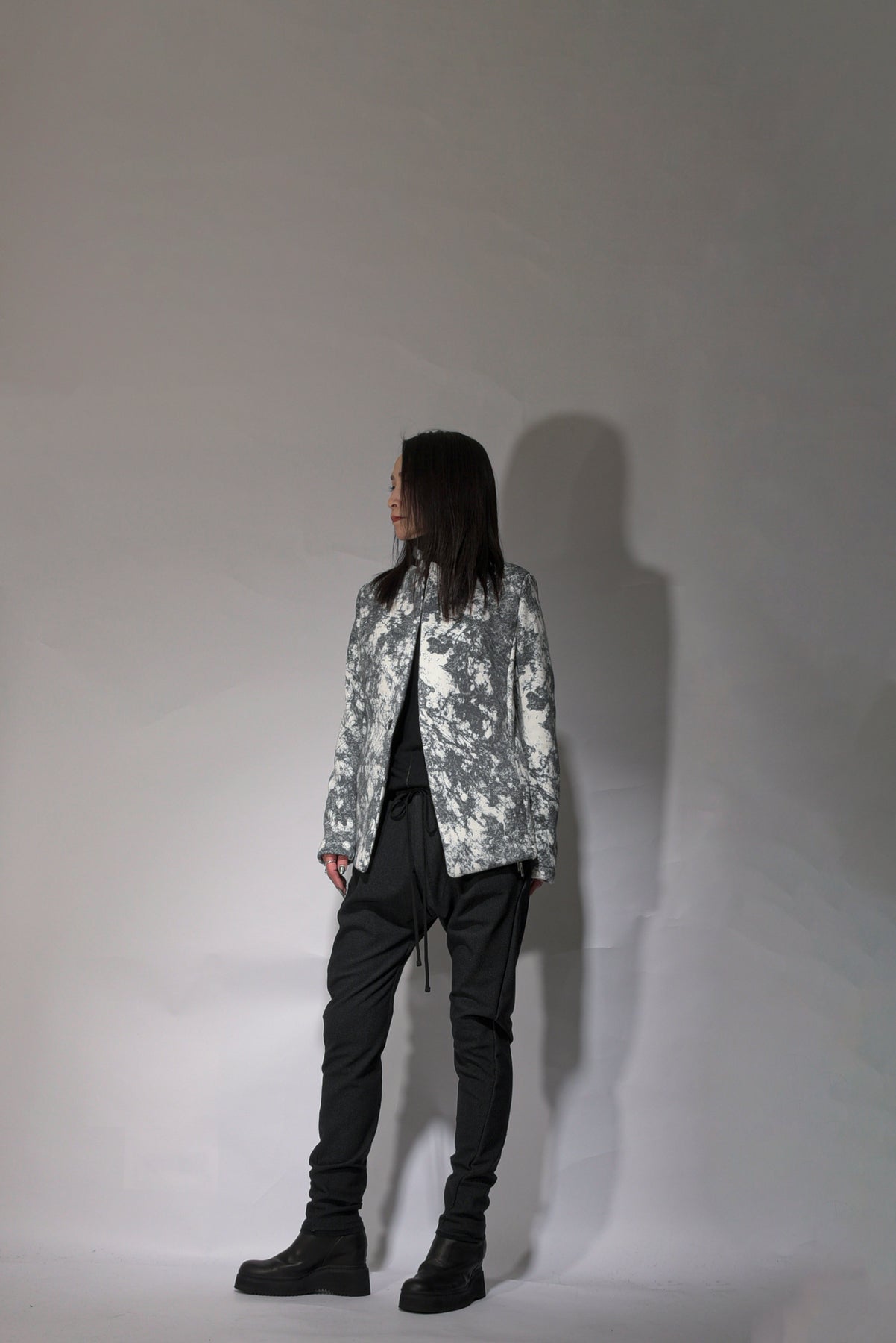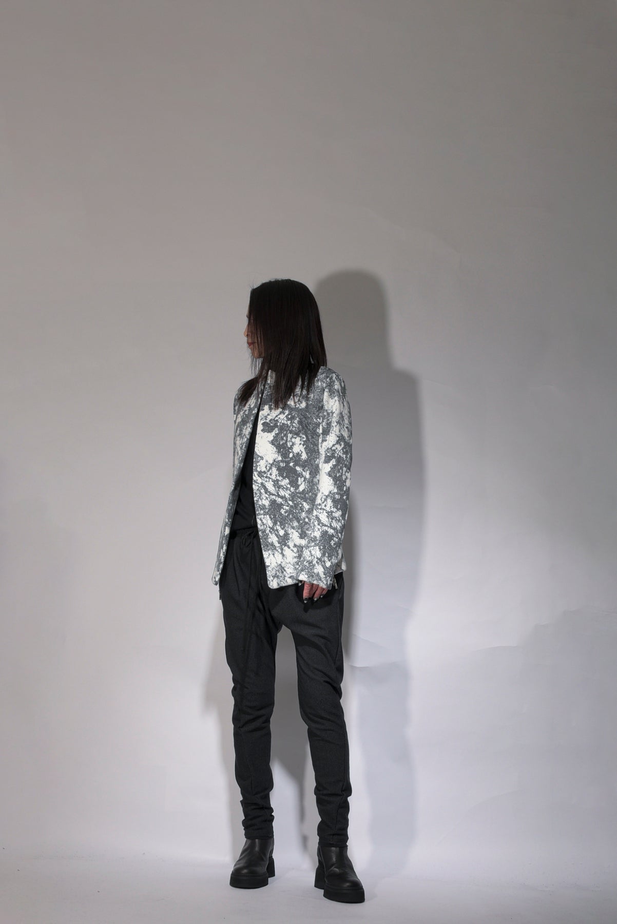 color A, Black x Off-white, B, Charcoal gray x Black